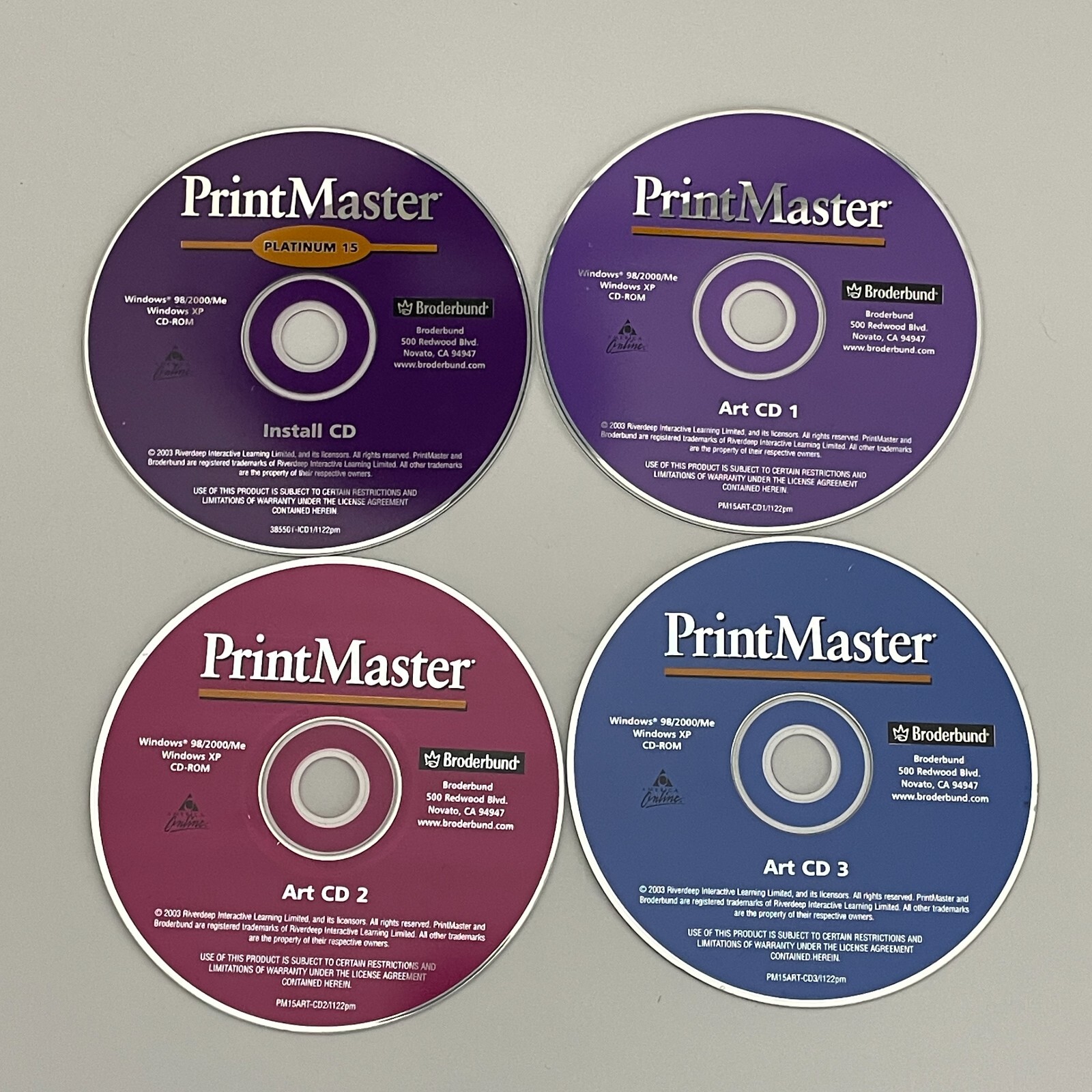 Print Master Platinum 15 - 4 CD-ROMS, Install, Art 1,2 3 LOT OF 4 SET Win 98