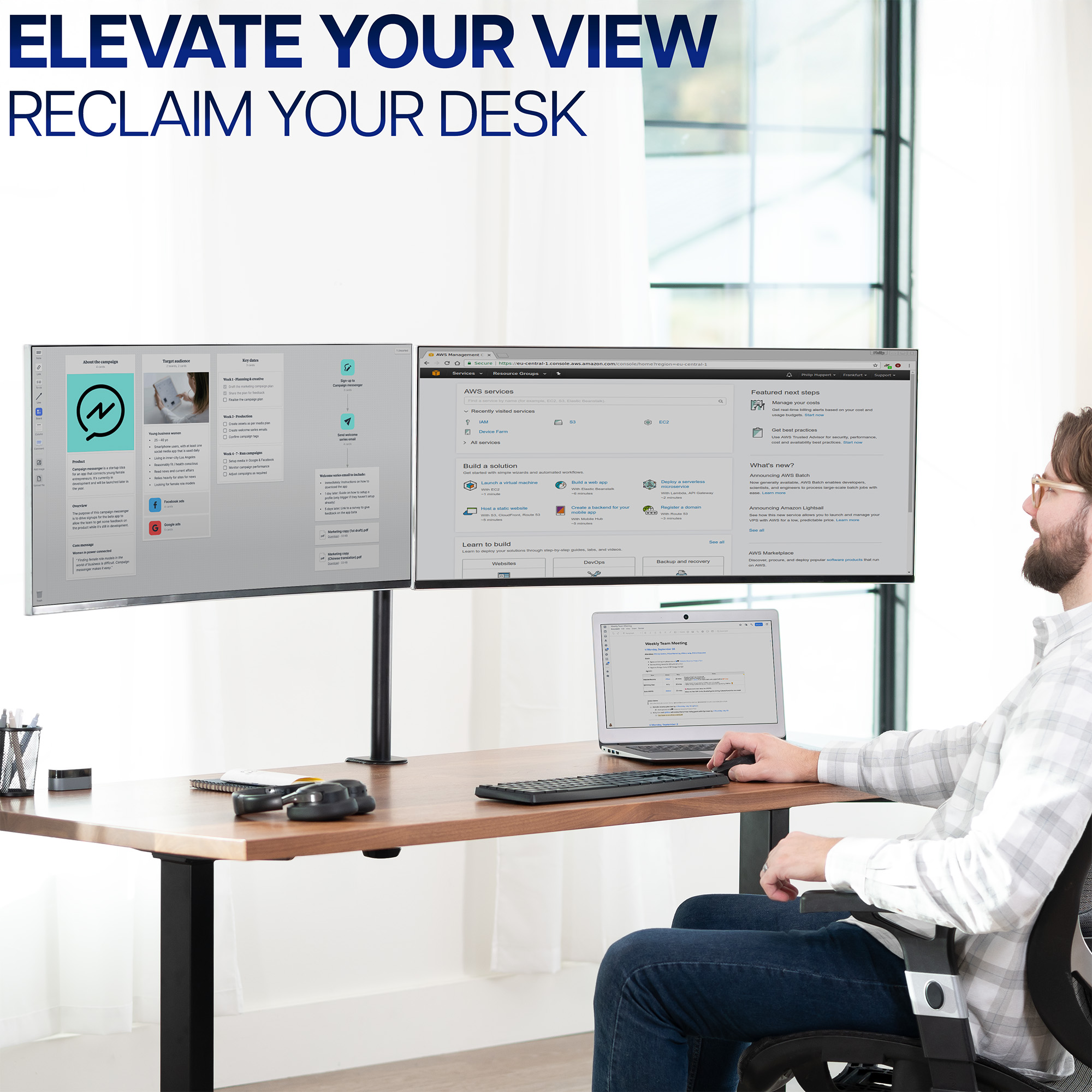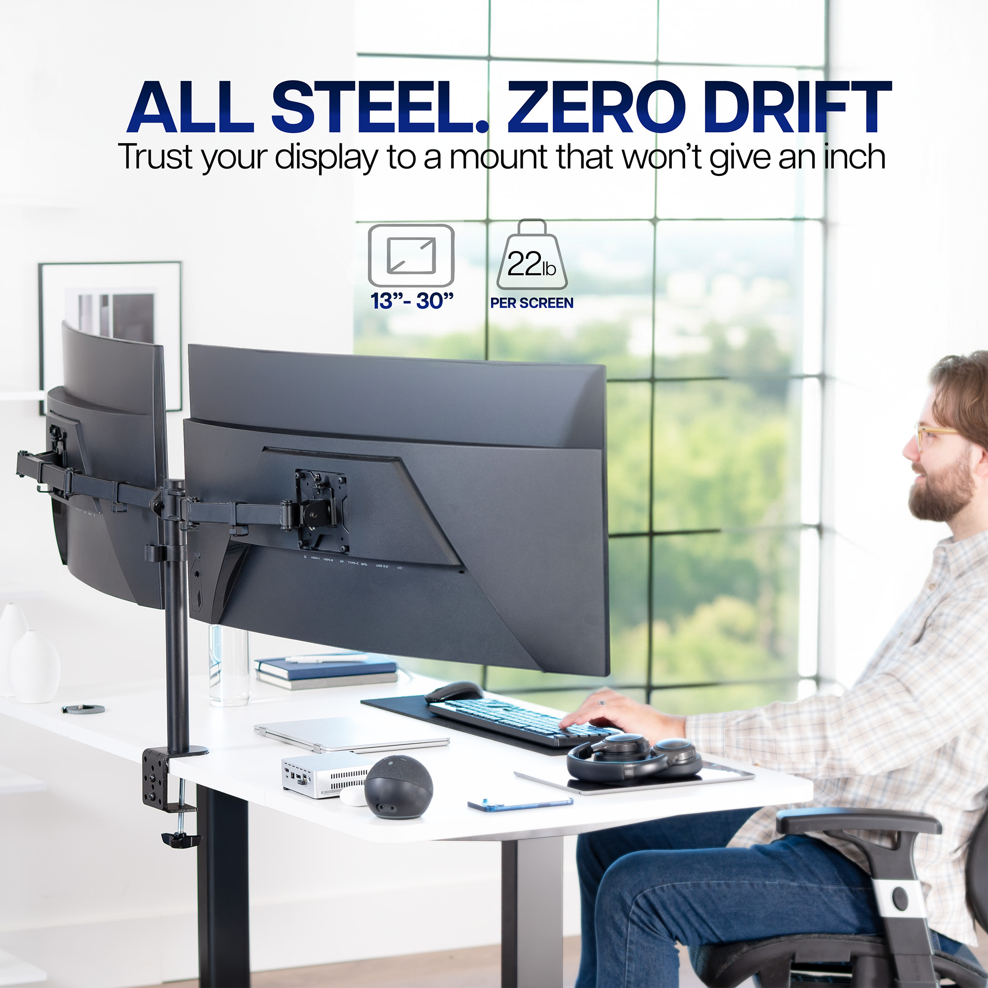 VIVO Black Dual Monitor Adjustable Desk Mount, Fits Ultrawide Screens up to 38