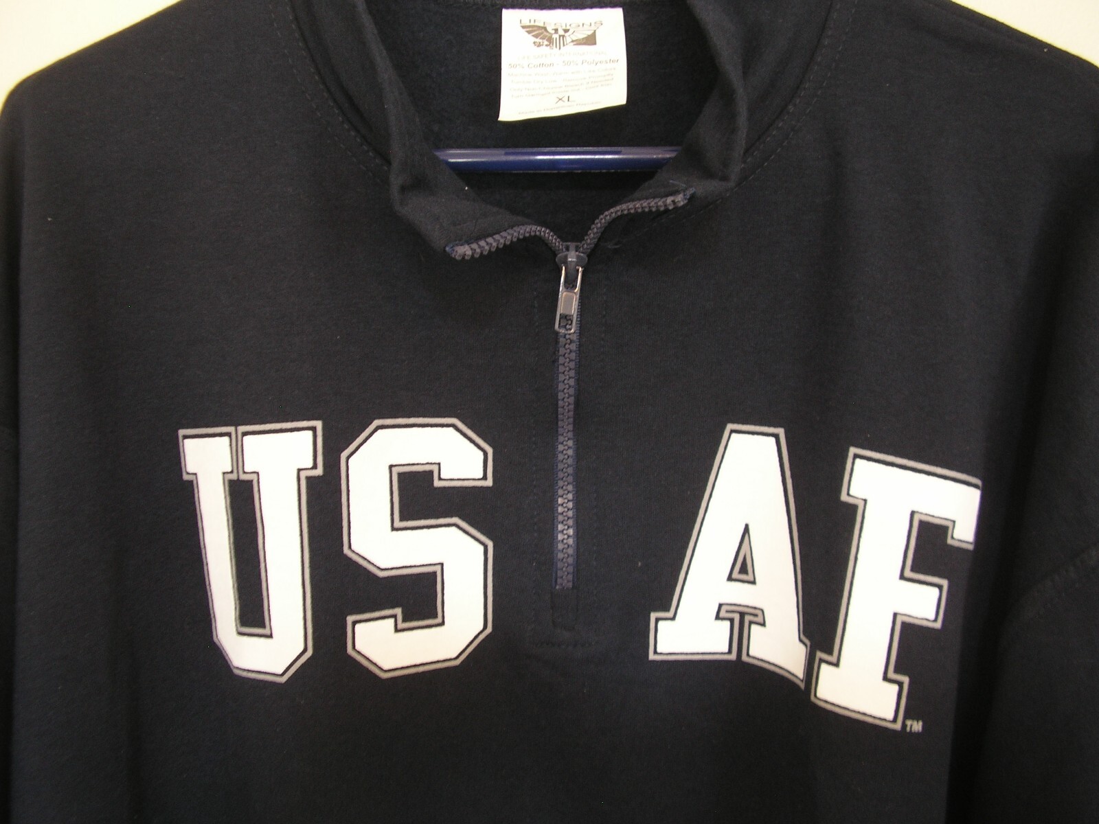 как выглядит United States Air Force Dark Blue 1/4 Zip XL Pullover with White USAF Lettering фото