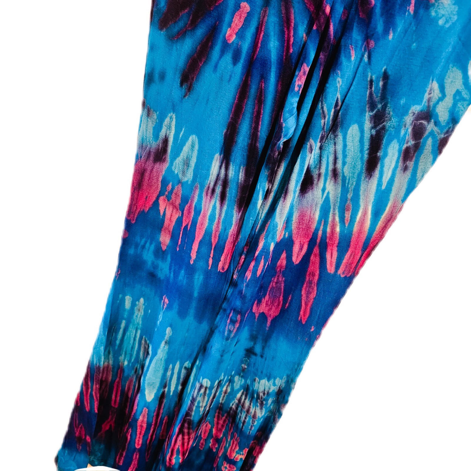 как выглядит TIE DYE Lt. Blue Rayon Stretchy Bell Bottom Pants OS-NEW фото