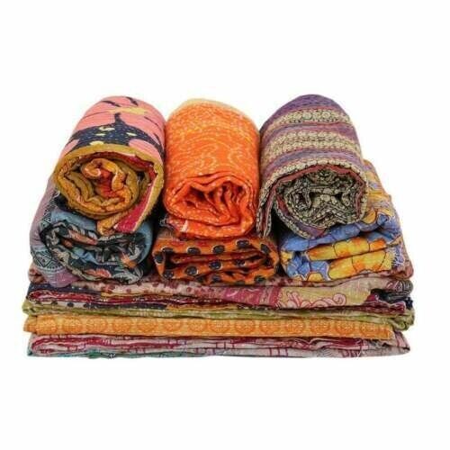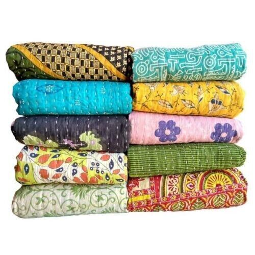 5 PC Wholesale Lot Throw Blanket Kantha Quilt Indian Vintage Cotton Bedspreads