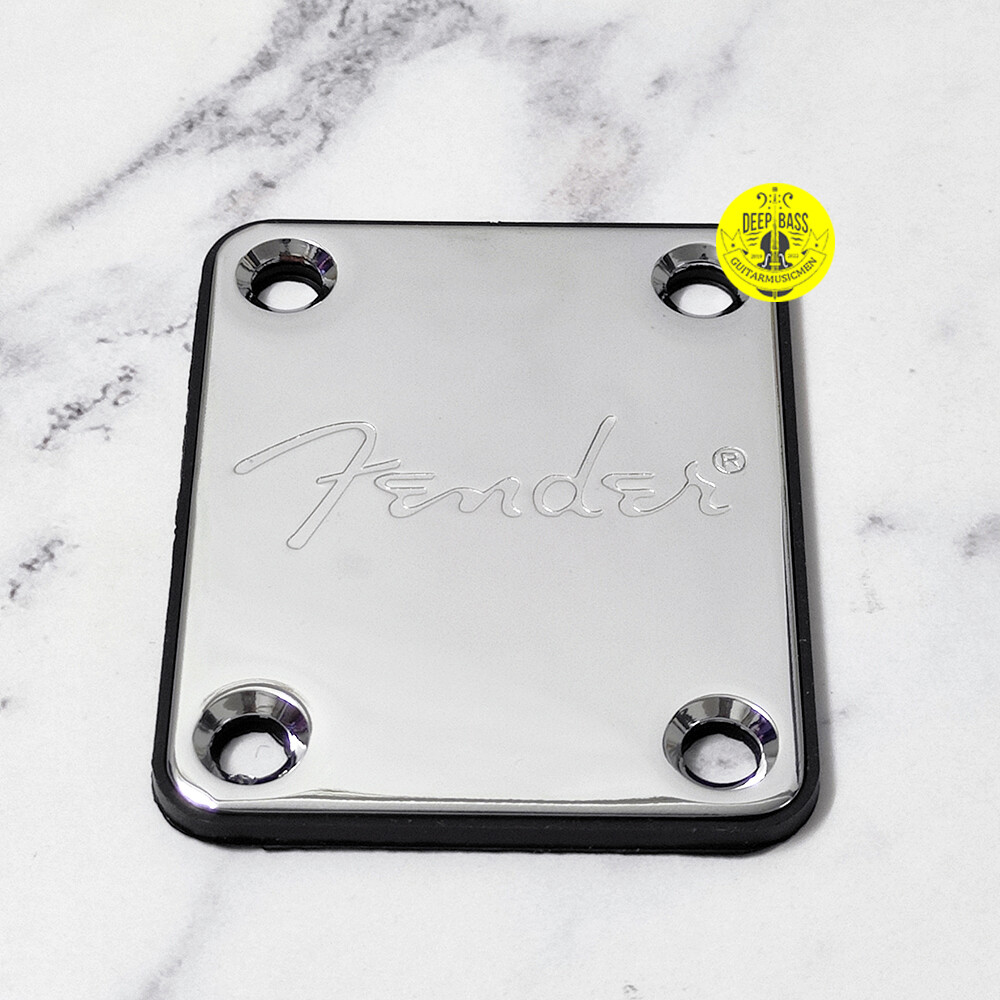как выглядит For Fender Strat Tele Electric Guitar Neck Plate Silver Engraved Fender Logo фото