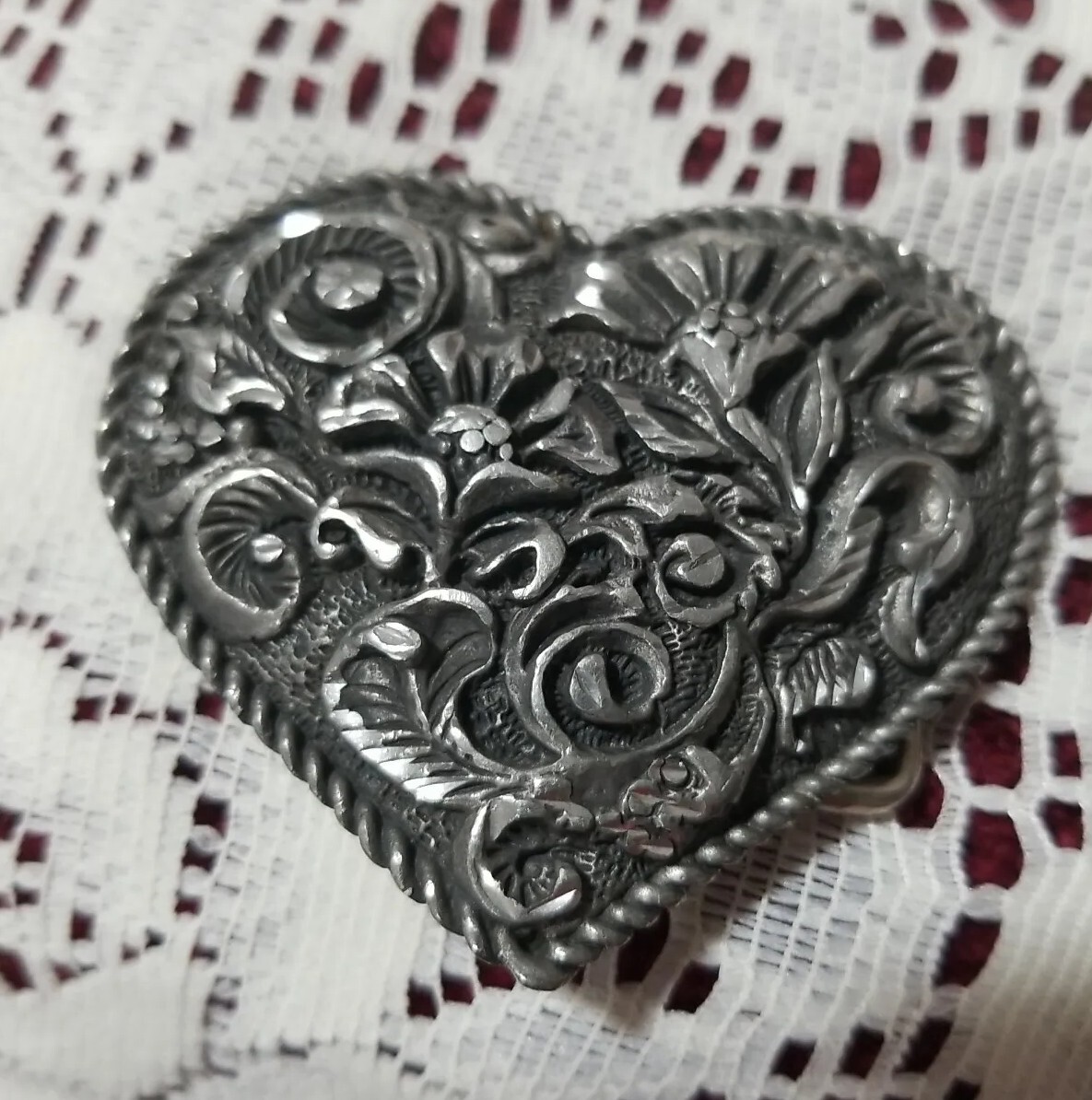 как выглядит Ladies Floral Heart Shaped Belt Buckle Pewter. Made In USA фото