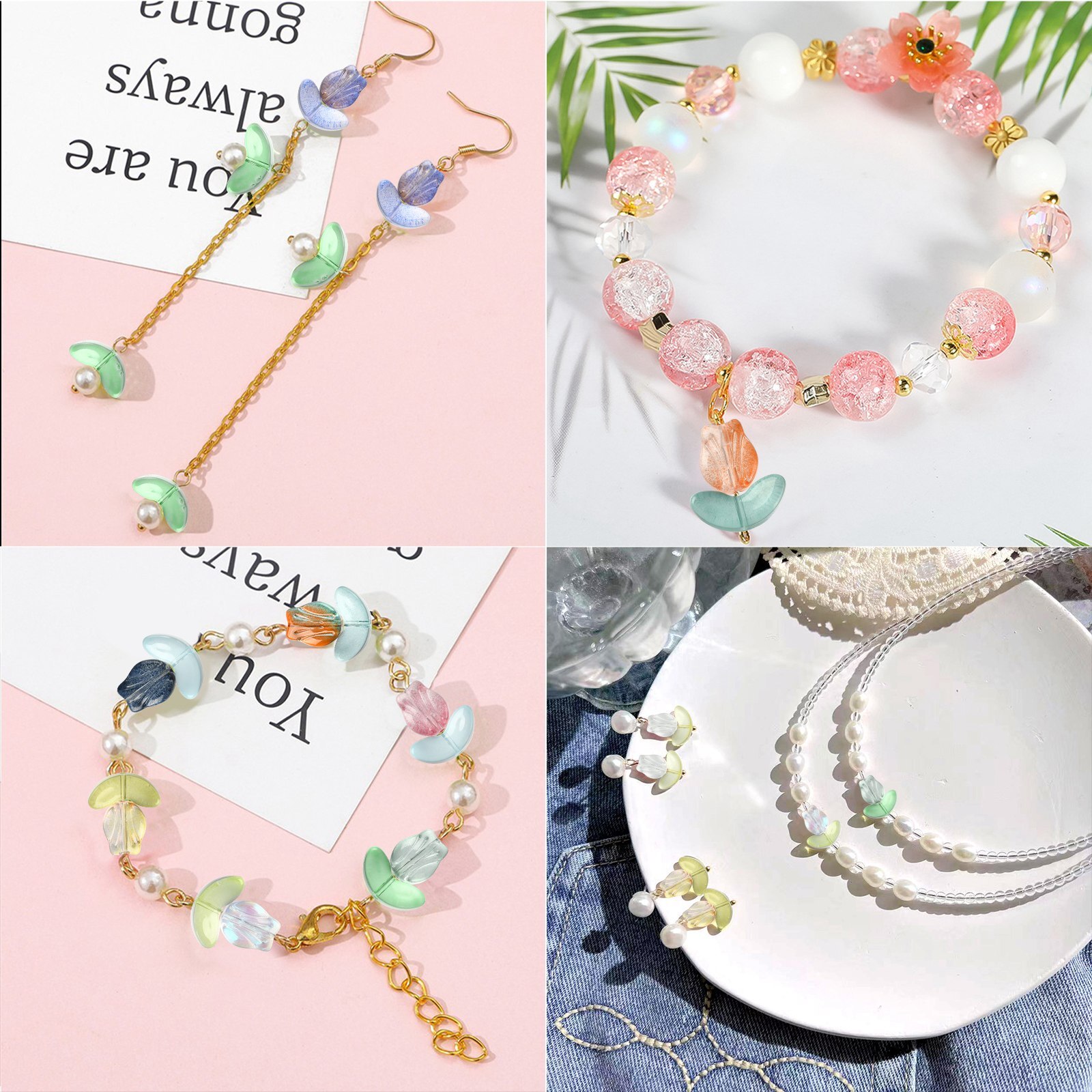 100x Lampwork Glass Crystal Flower Spacer Beads for Jewelry Making Accessories