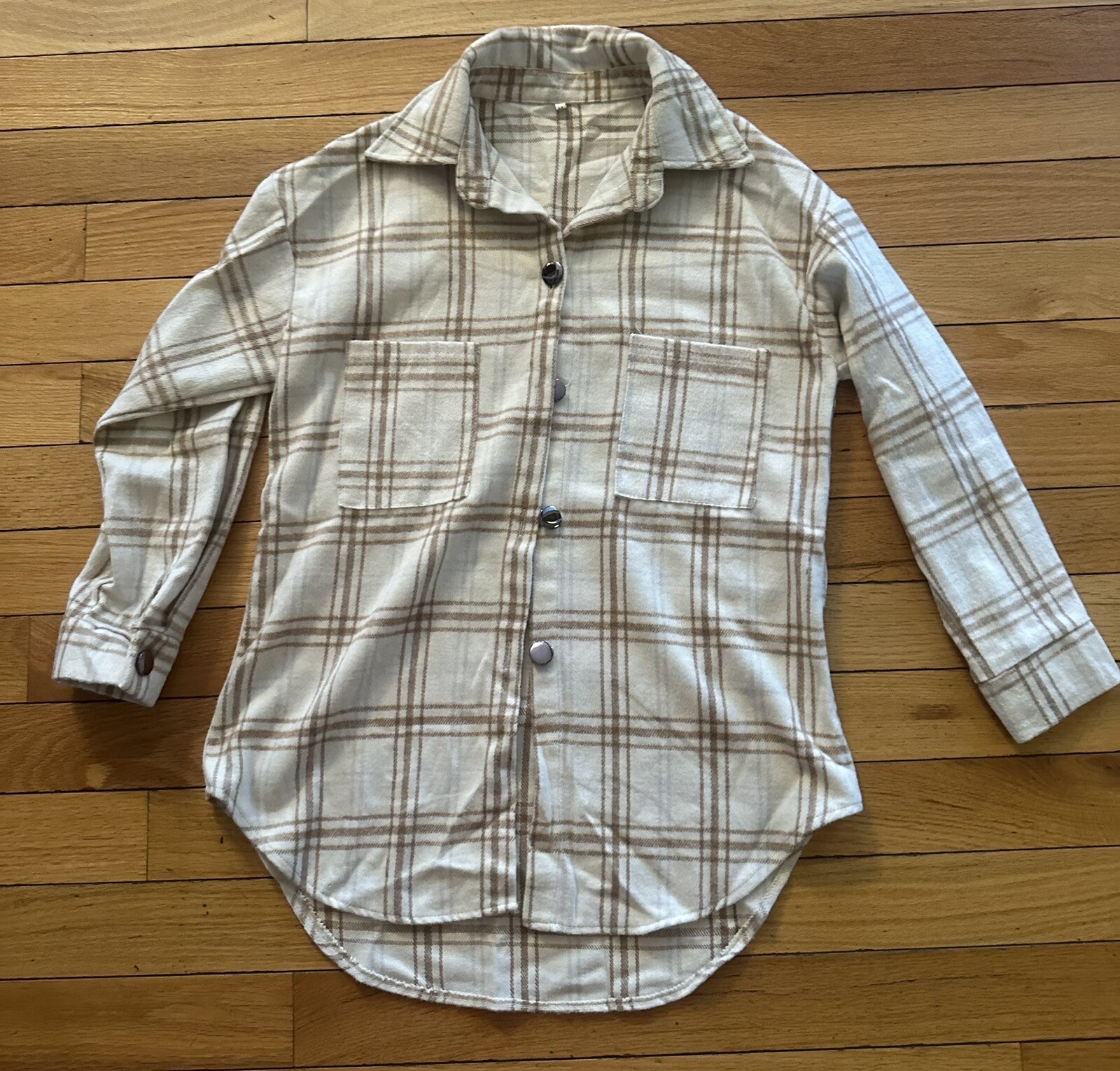 как выглядит Womens Long Sleeve Flannel Button-Down Shirt - Plaid M фото
