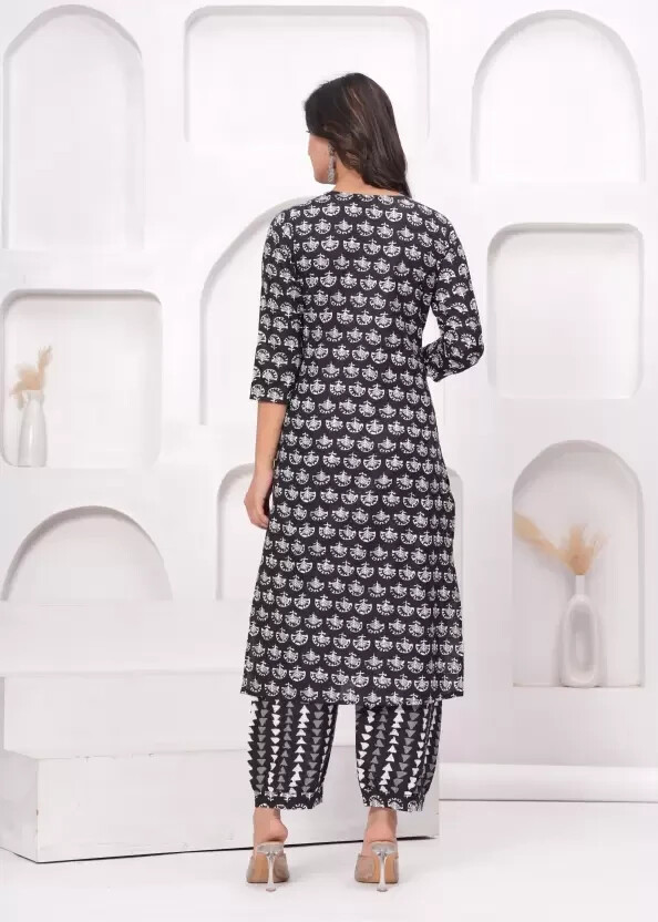 Premium New Women's Traditional Wear Black Cotton Kurta,Patiala Pant And Dupatta