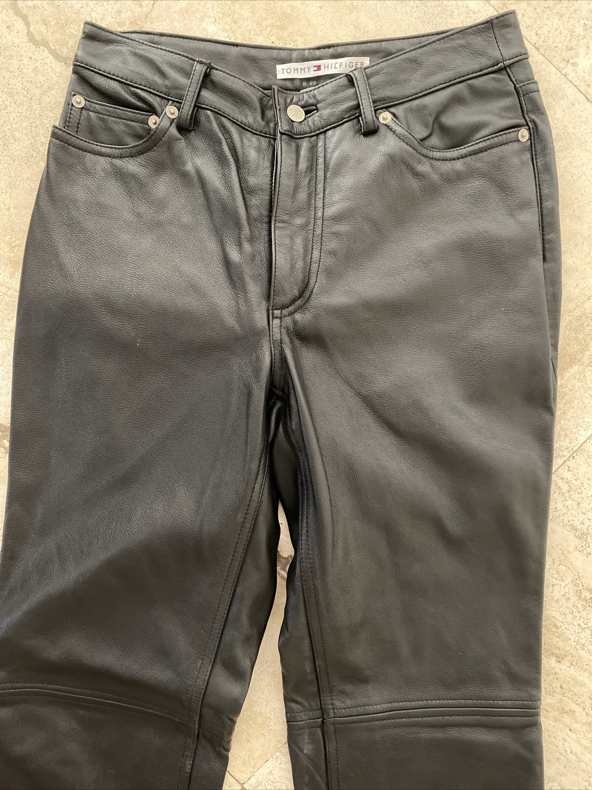 как выглядит Women s Soft Leather Pants Black Tommy Hilfiger SZ 4 Mom Jeans Vintage 90s фото