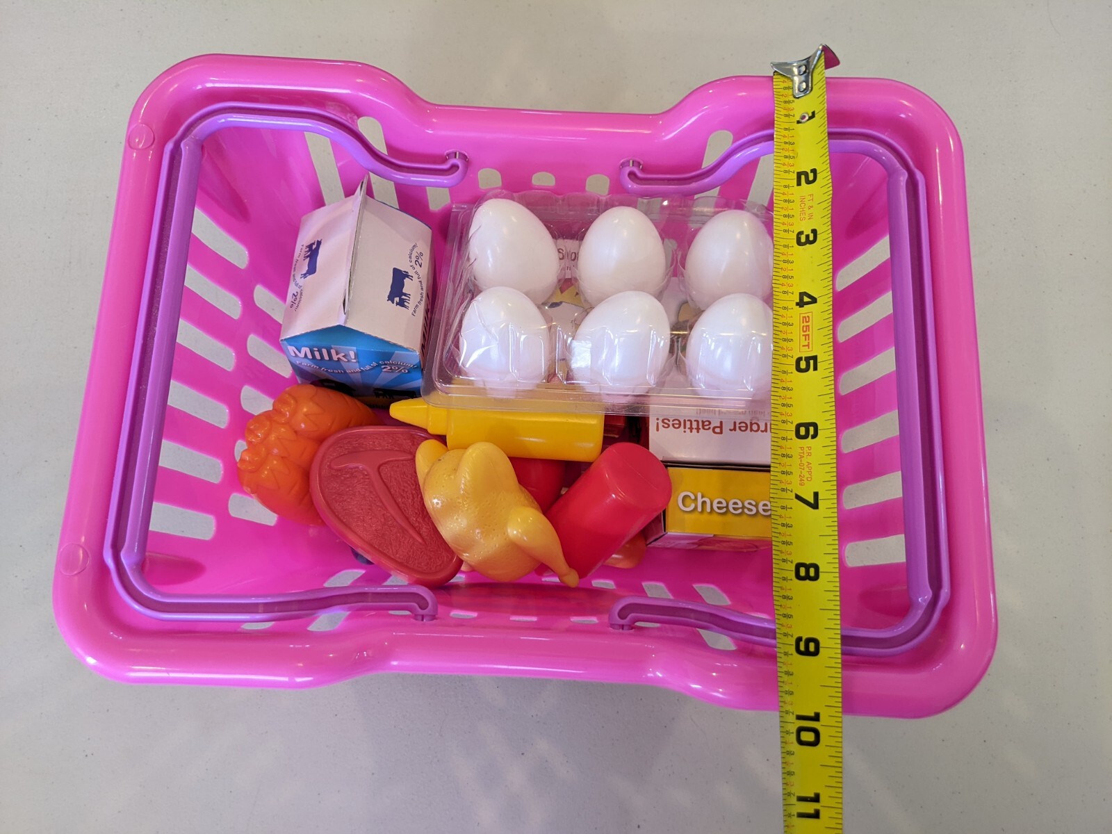 как выглядит Play Food Shopping Basket And Toy Food Items: Eggs, Milk, Fruit, Meat фото