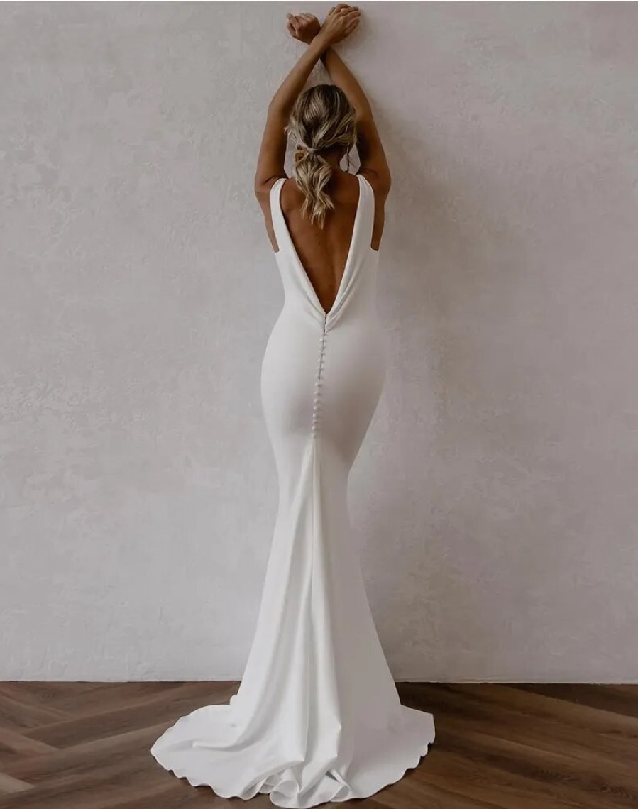 Backless Wedding Dress,Sleeveless Boho Mermaid bridal gown,simple bridal gown