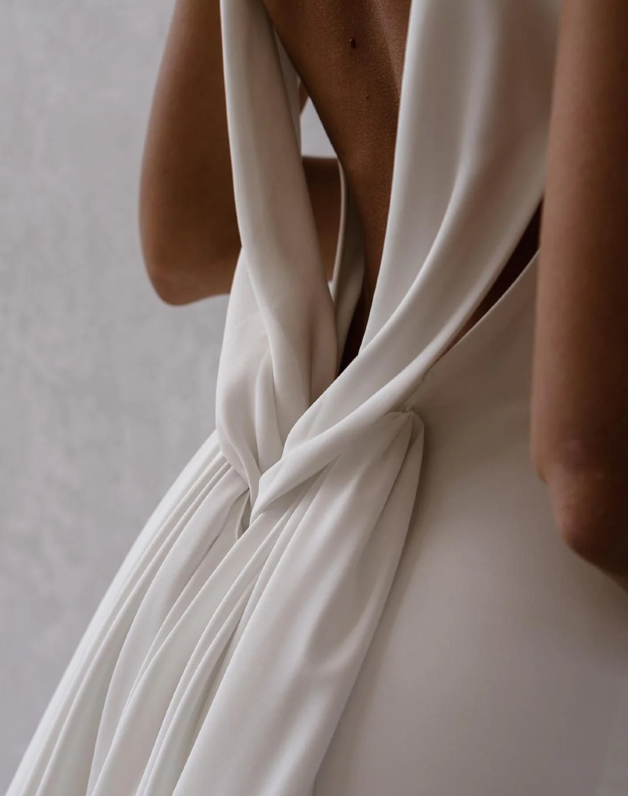 как выглядит Backless Wedding Dress,Sleeveless Boho Mermaid bridal gown,simple bridal gown фото