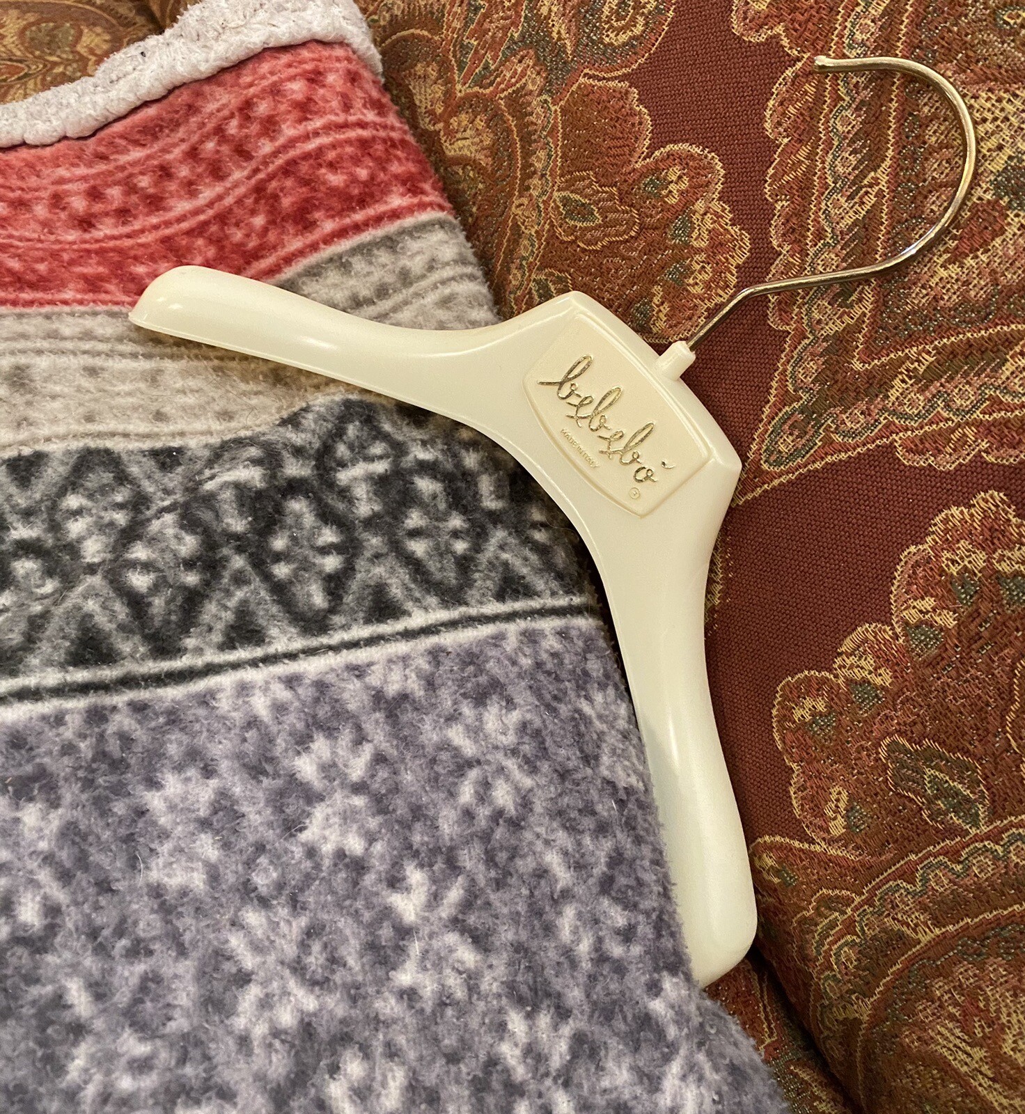 Vtg Italian Child s Clothing Hanger BeBeBo Ivory Color 10 L Sculpted Plastic