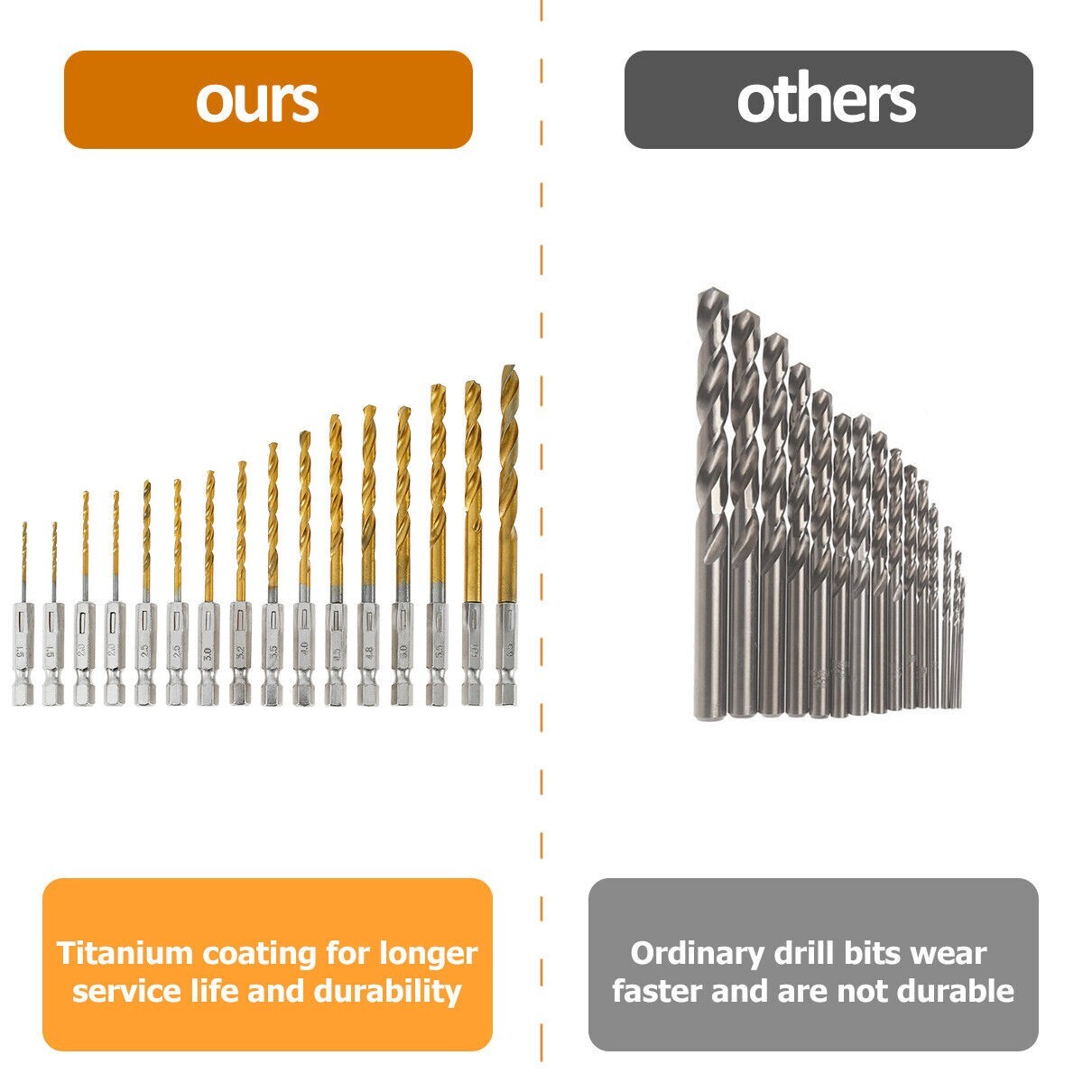 32pcs 1/4'' Hex Shank Titanium Coated HSS Steel DRILL BIT Set Metal Wood Plastic