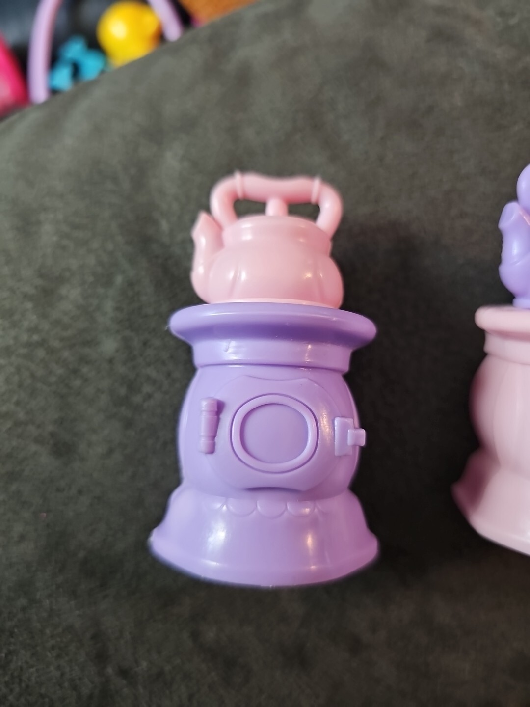 как выглядит Plastic Toy Tea Kettles On Stove- No Markings Each Figure Measures 2inx1.5inx3i фото