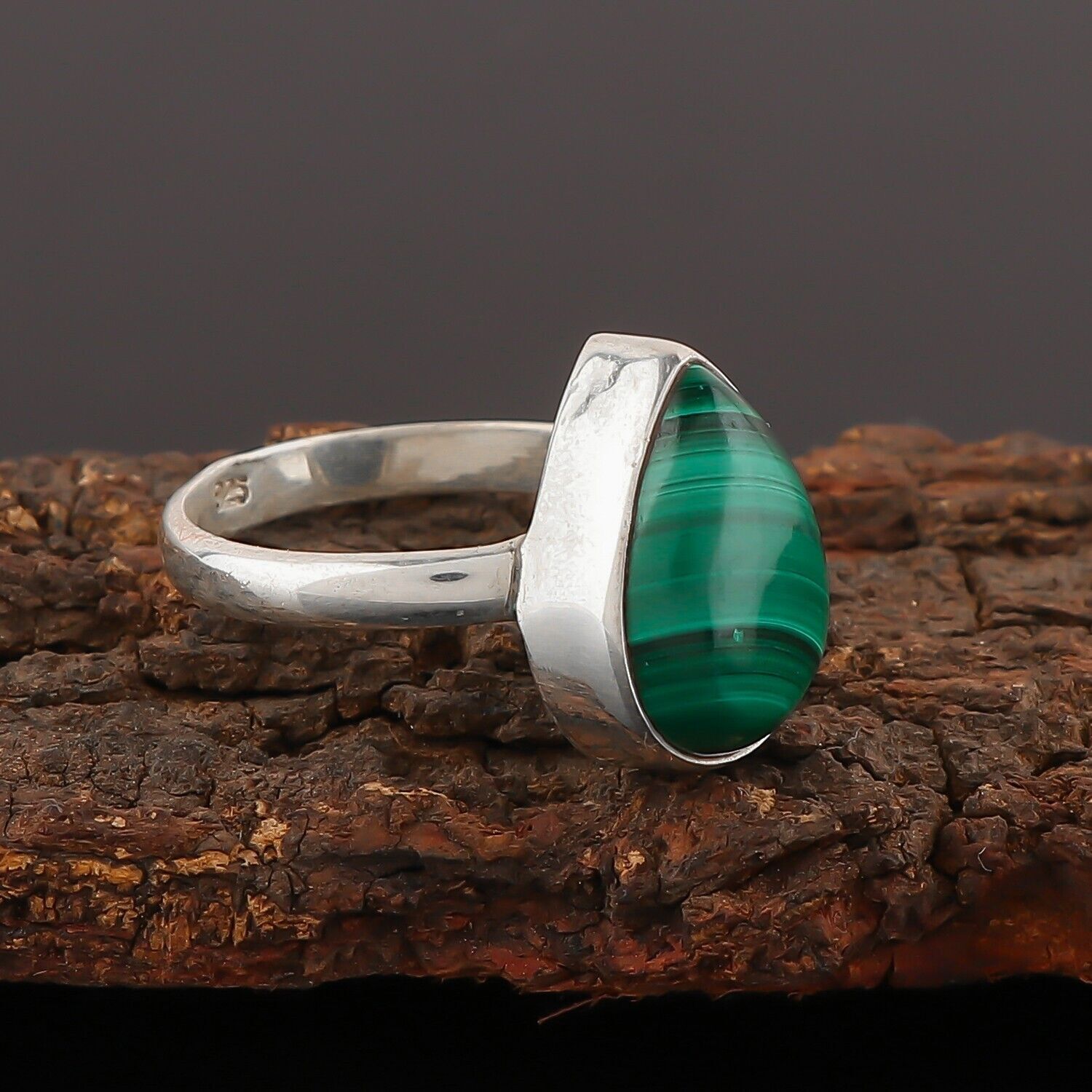 Natural Malachite Gemstone Handmade Ring,925 Sterling Silver Engagement GiftRing