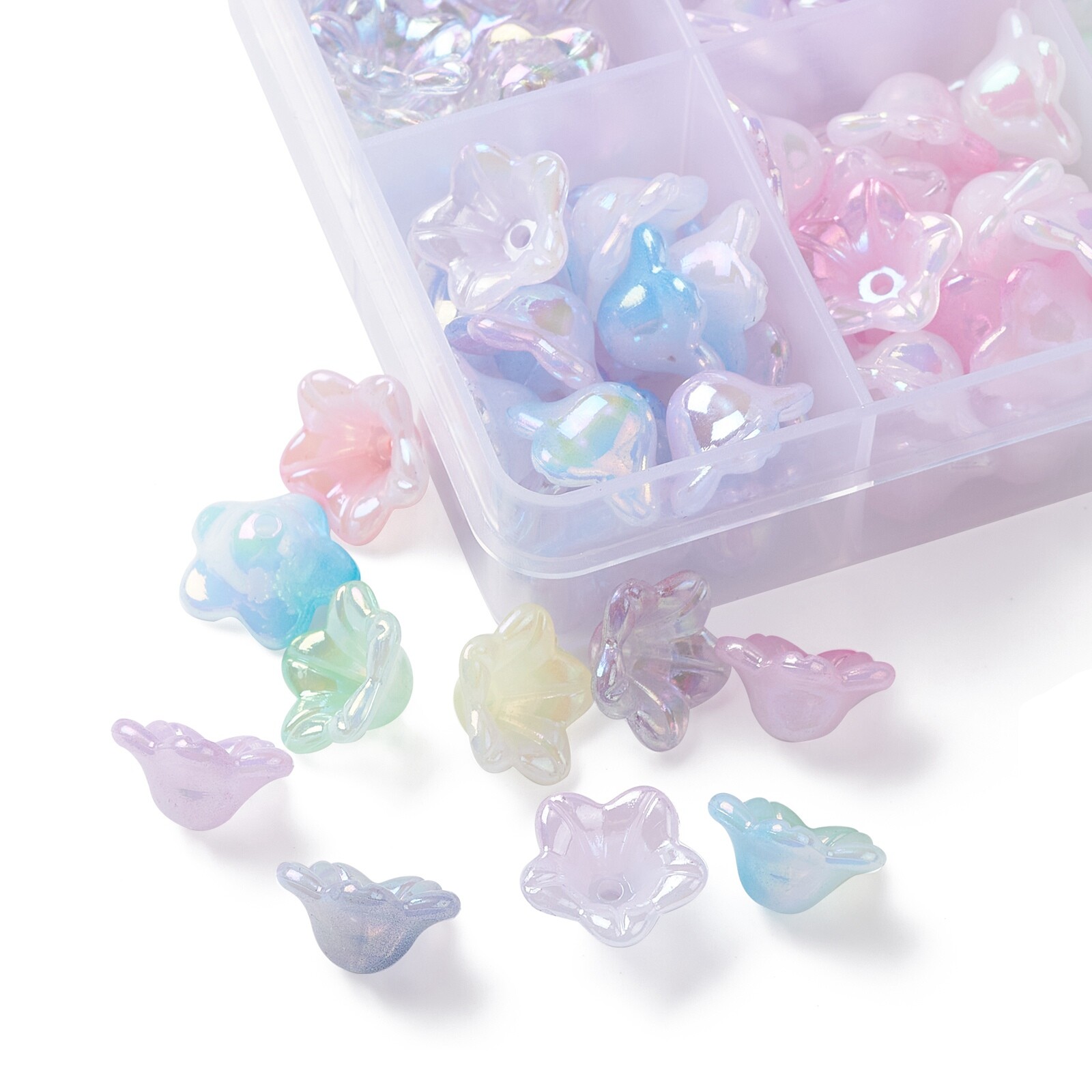 как выглядит 200x Opaque Acrylic Lily Flower Spacer Bead Caps for DIY Bracelet Jewelry Making фото