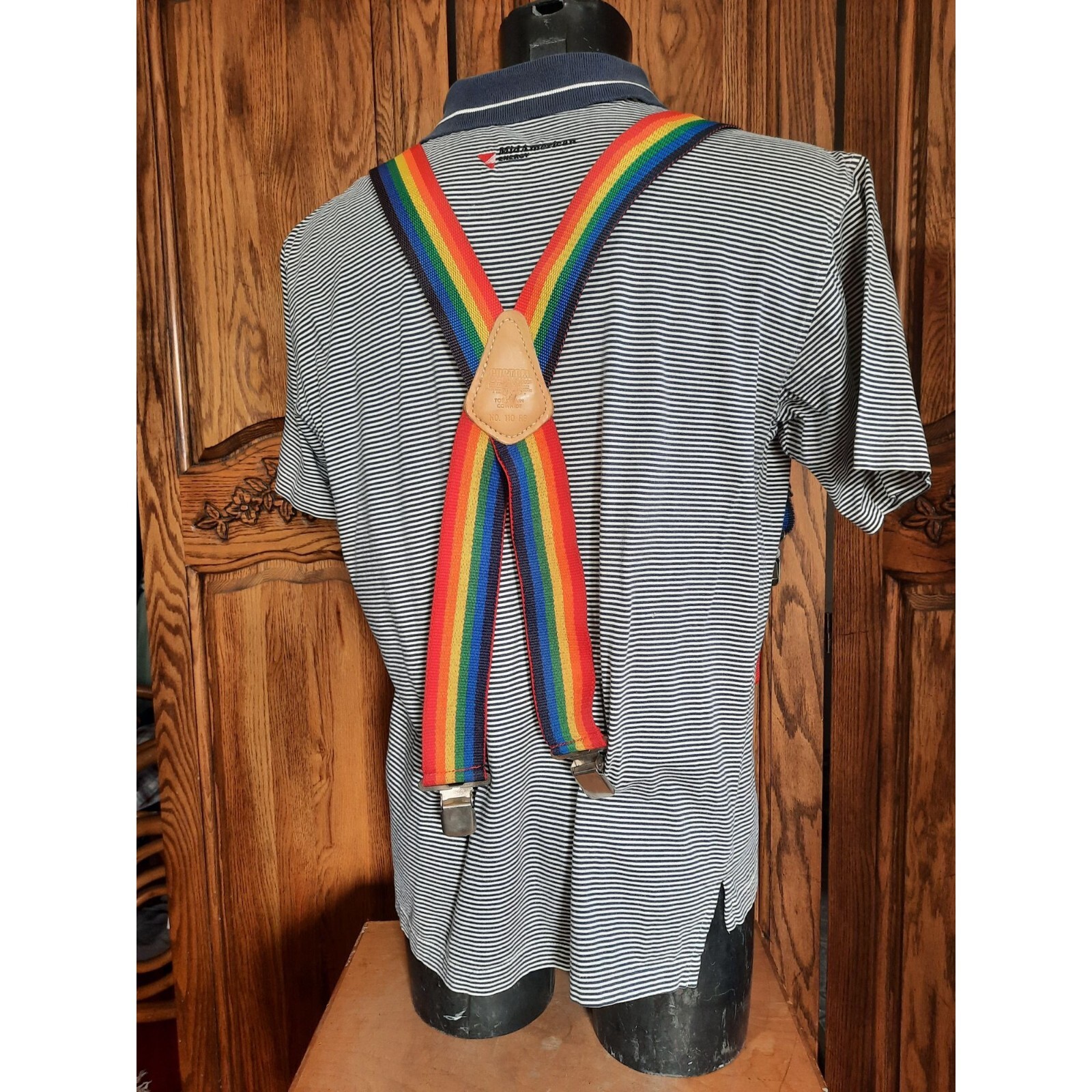 Vintage Custom LeatherCraft Rainbow Mens Leather Y Back Clip On Suspenders 1980s