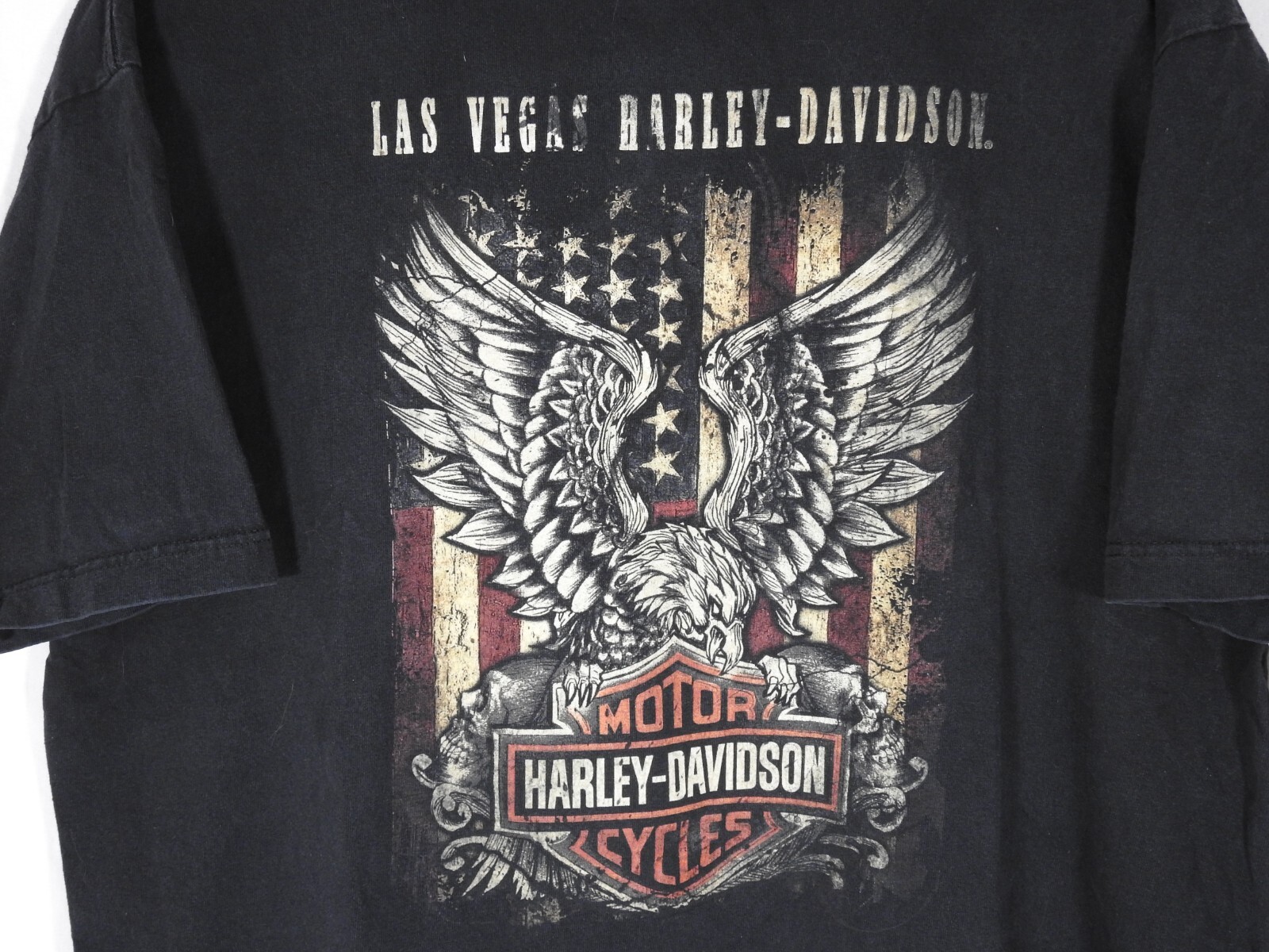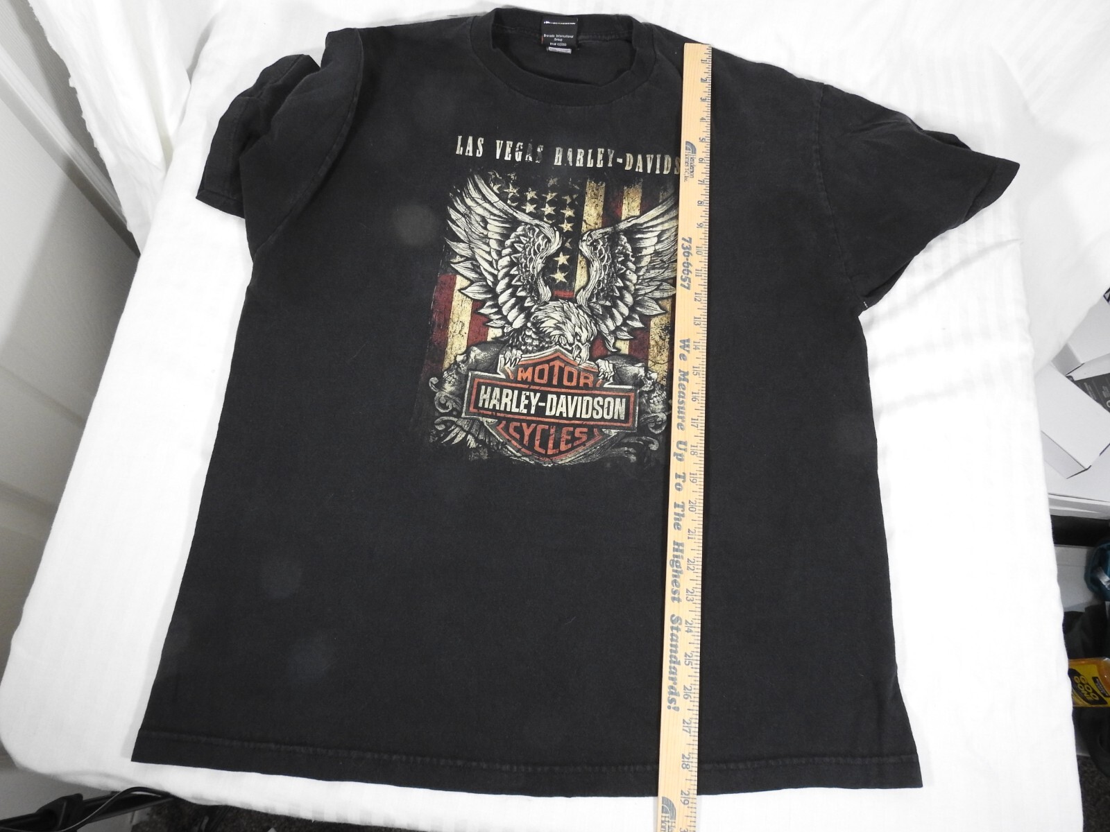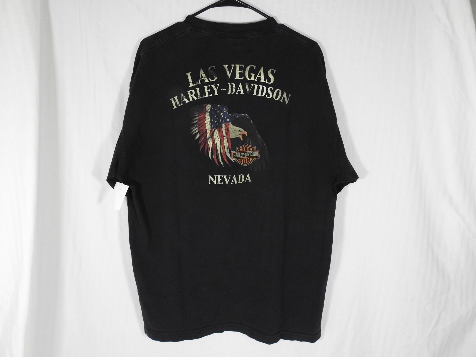 • Black Las Vegas Harley Davidson T-Shirt w/ American Flag Eagle. Men's X-Large.
