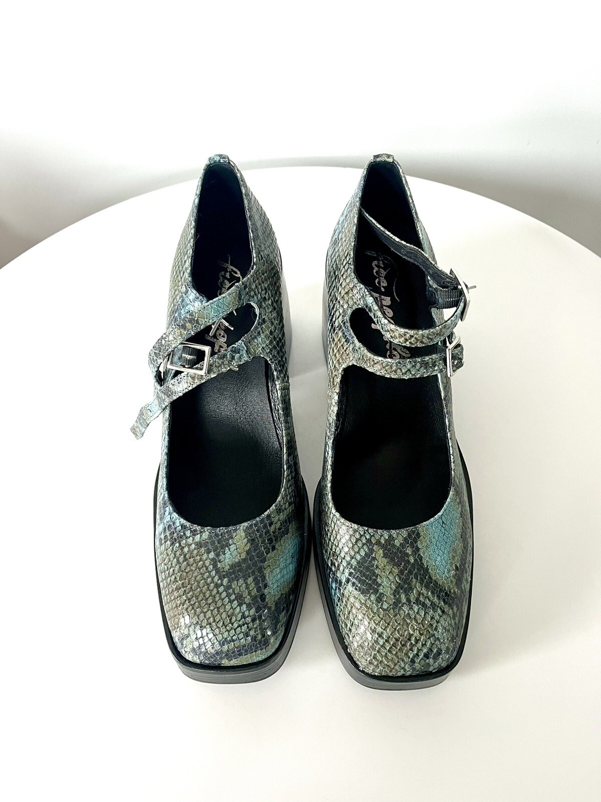 как выглядит Free People Ruby Double Strap Platform Mary Janes 41 10.5 Blue Snakeskin фото