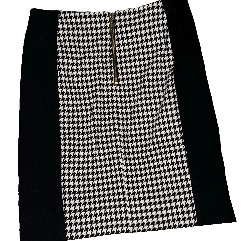 как выглядит MICHAEL KORS Black/White Stretchy Houndstooth Pencil Skirt w/Gold Zipper 6 NWT фото