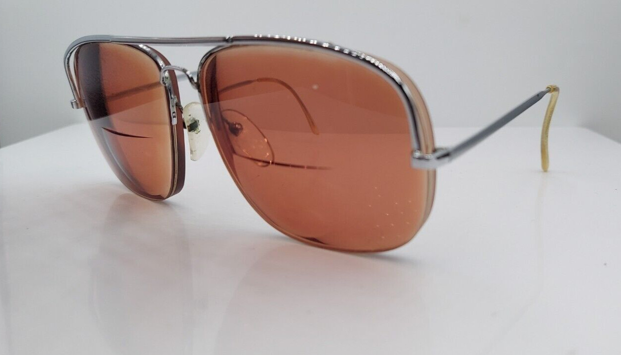как выглядит Vintage Logo Paris Silver Pilot Half-Rim Metal Sunglasses France FRAMES ONLY фото