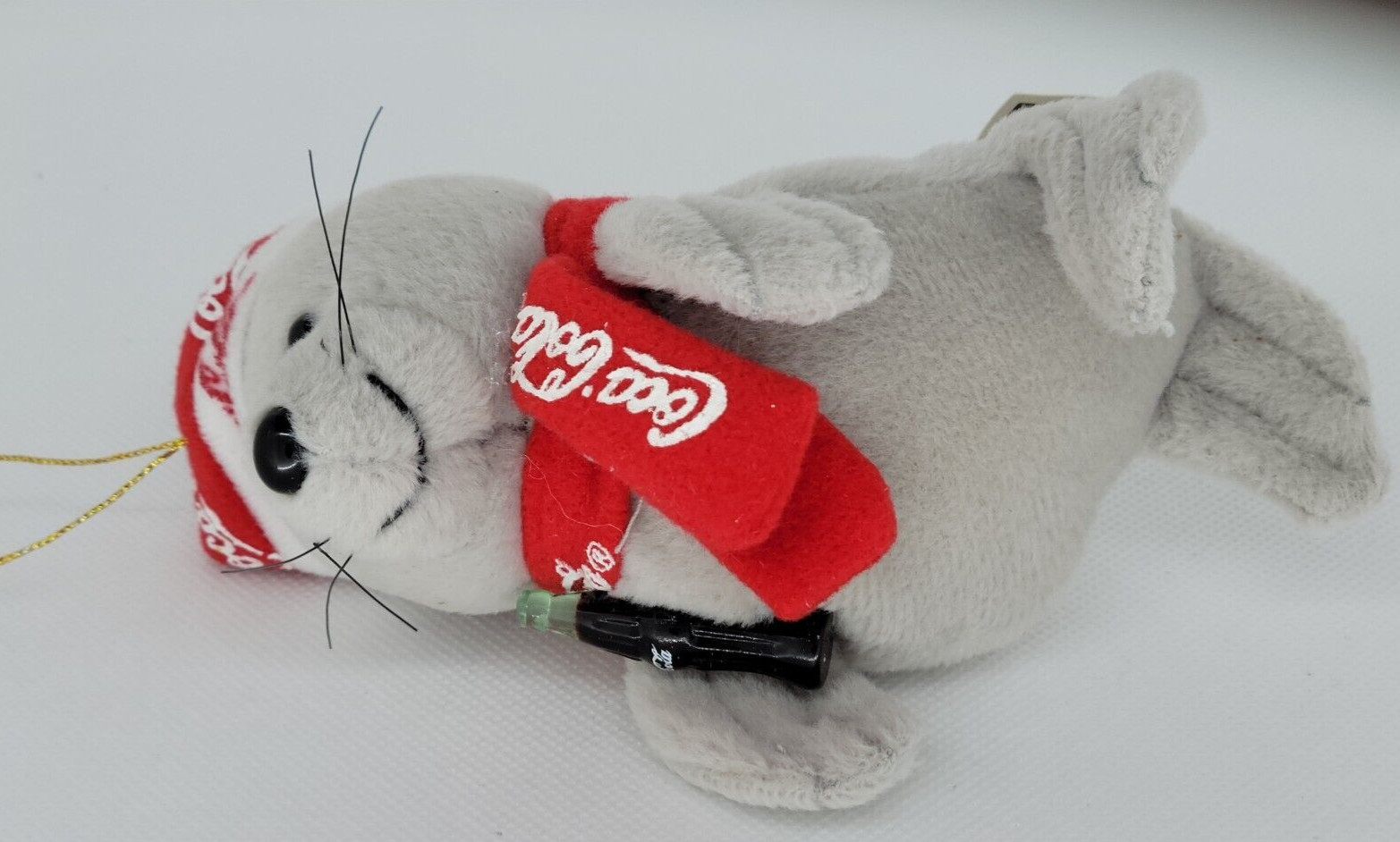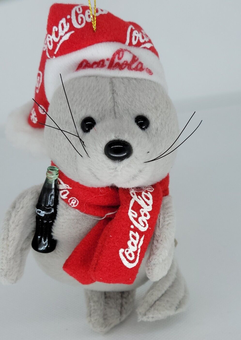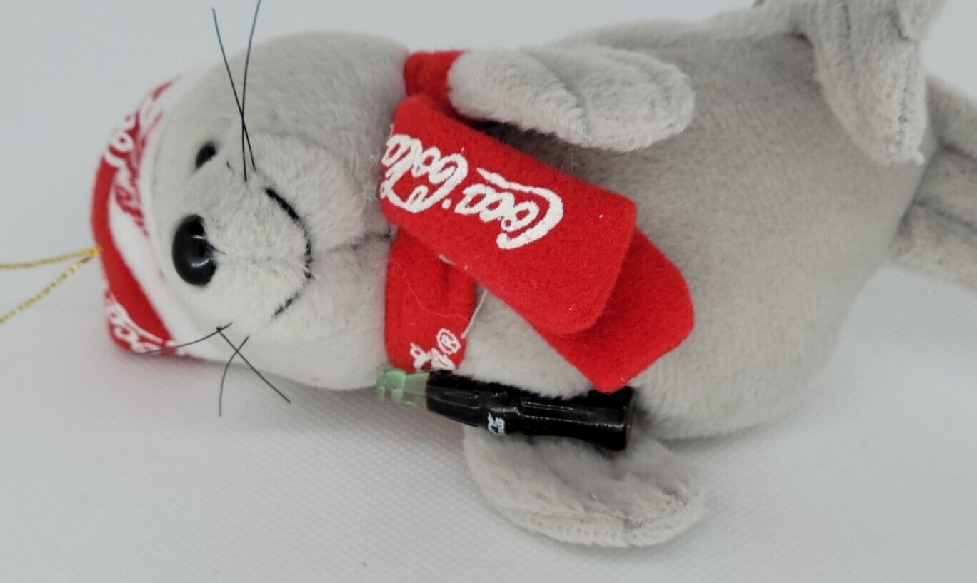 • Coca-Cola Christmas Ornament Seal 6 Plush Hanging 1998 Coke Bottle Rare