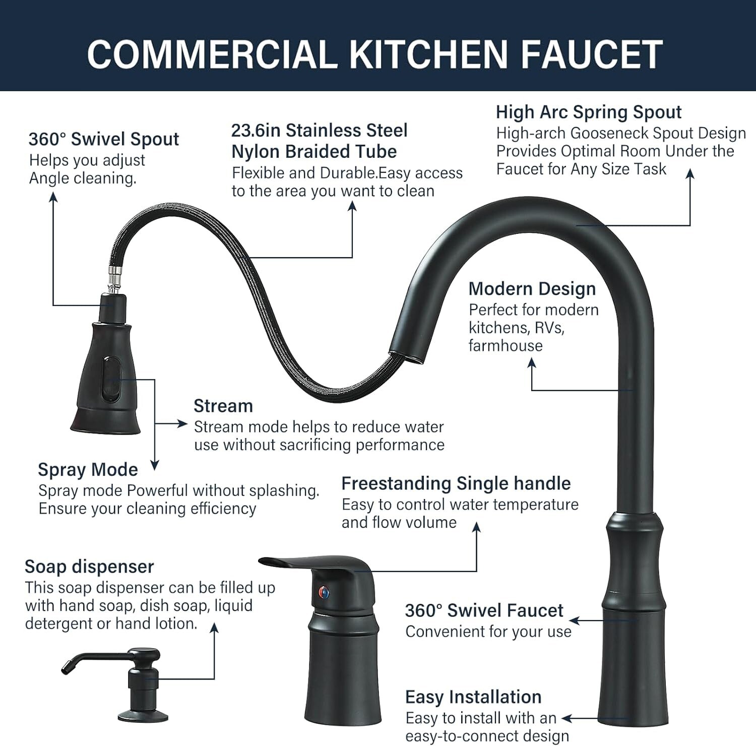 Kitchen Faucet with Pull Down Sprayer with Side Single Handle and Soap Dispenser