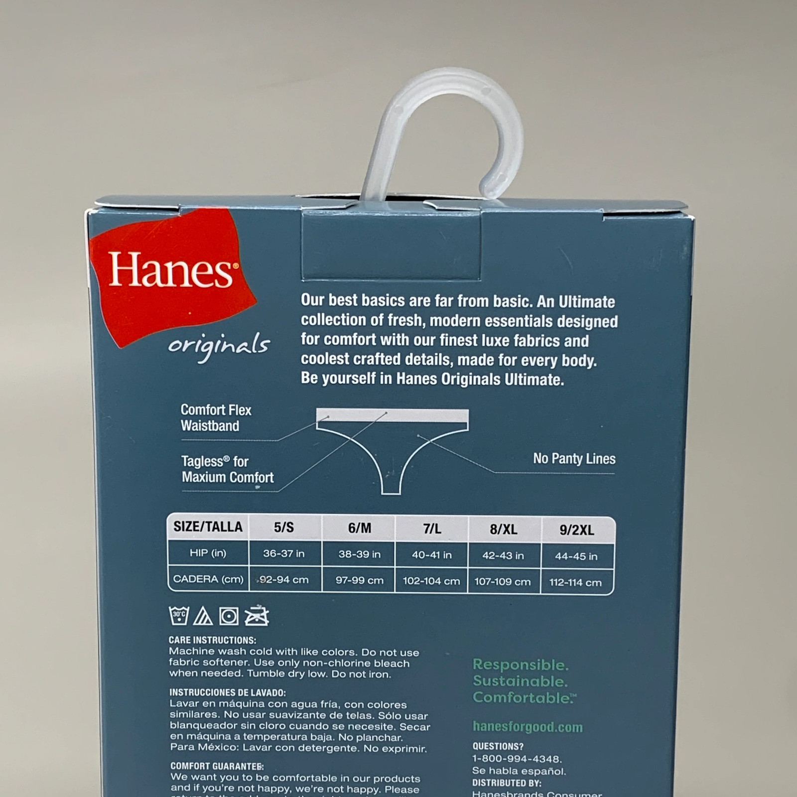HANES 3 PK Originals Women's Cotton Stretch Thongs Underwear Sz 7/L Blue/Pink