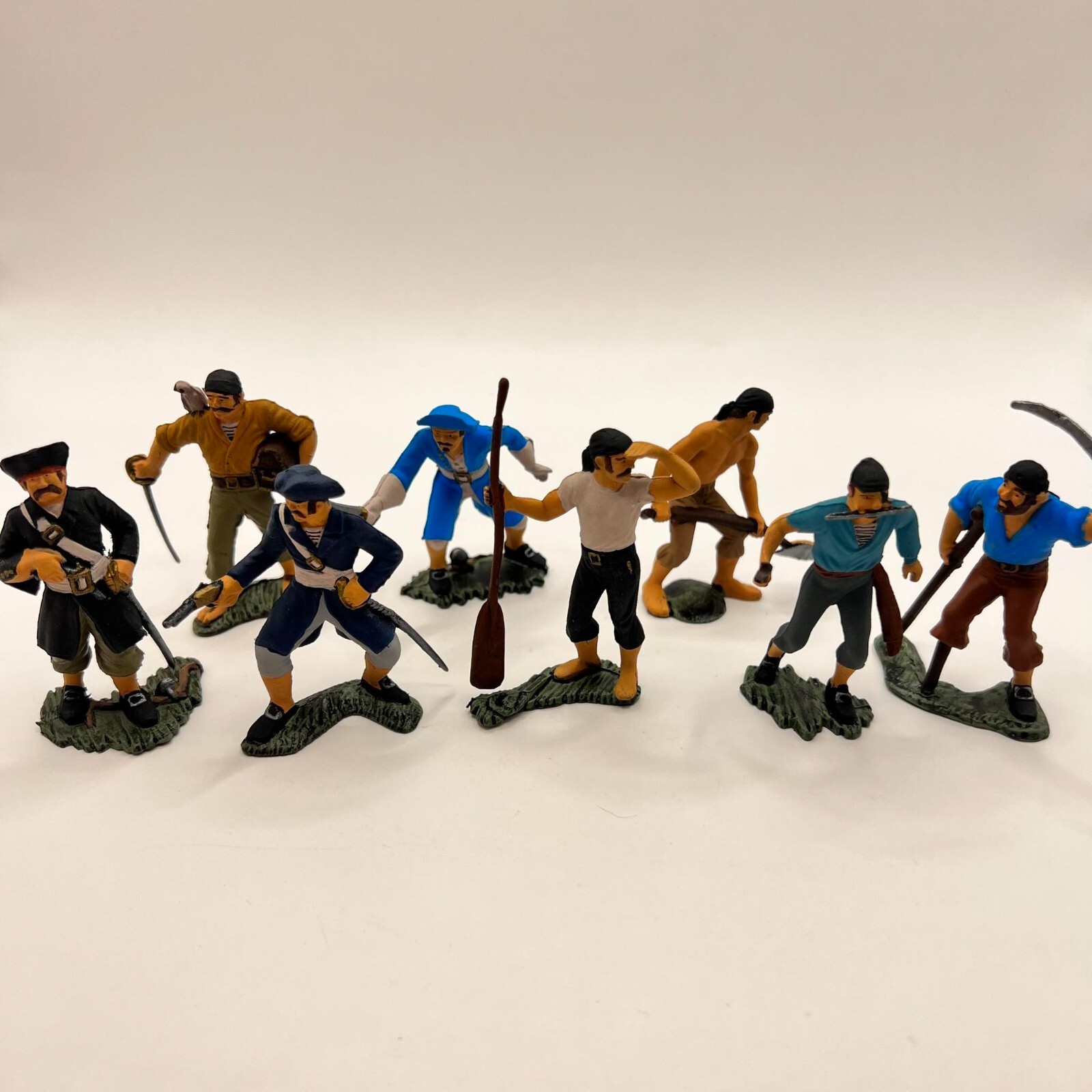 Vintage Soviet USSR Plastic Character Toy Set 8 Soldiers Pirates Signed