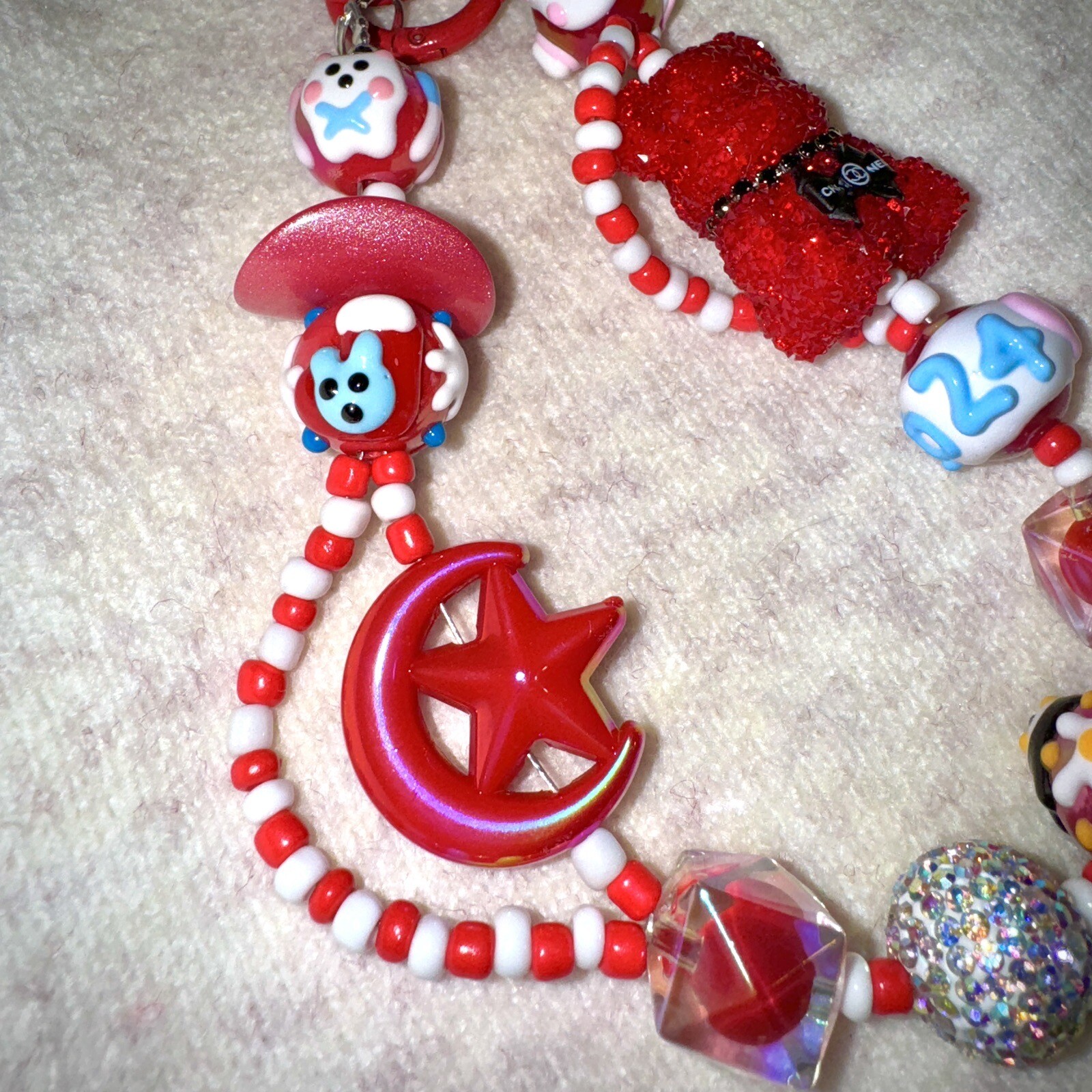1Pc Beaded Chain Phone Lanyard,Beaded Keychain RED more color available