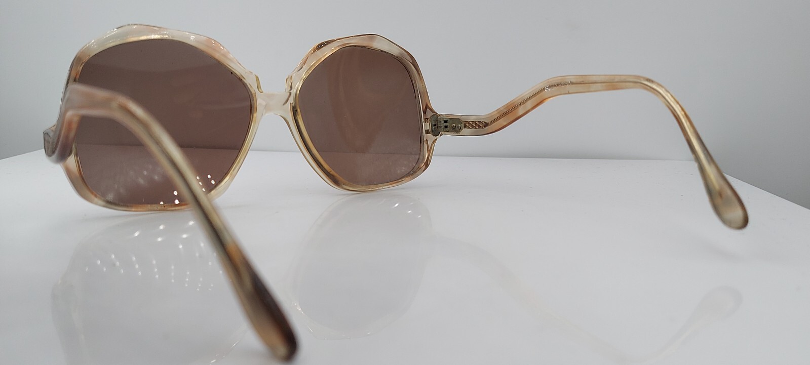 как выглядит Vintage Viva Suzy Brown Gray Translucent Oval Horn-Rimmed Sunglasses Frames фото