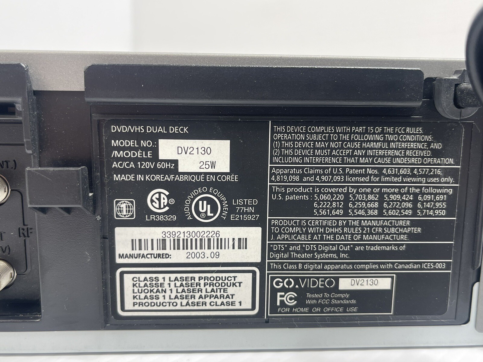 Go Video DV2130 VCR DVD Combo Recorder Player w/ Remote Cables Hi-Fi VHS DVD