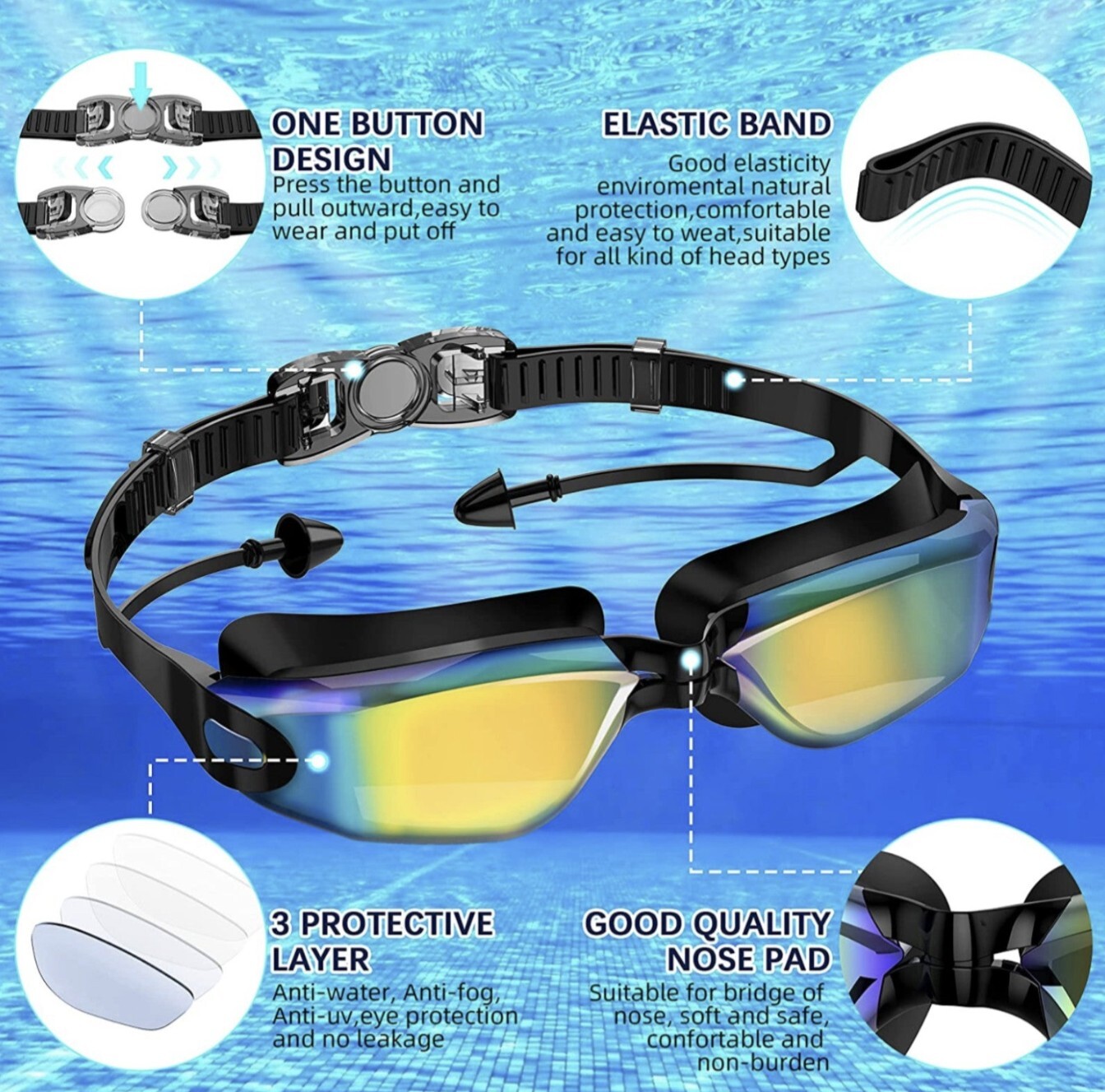 как выглядит Swimming Goggles Swimming Goggles No Leaking Full Protection Adult Men Women... фото