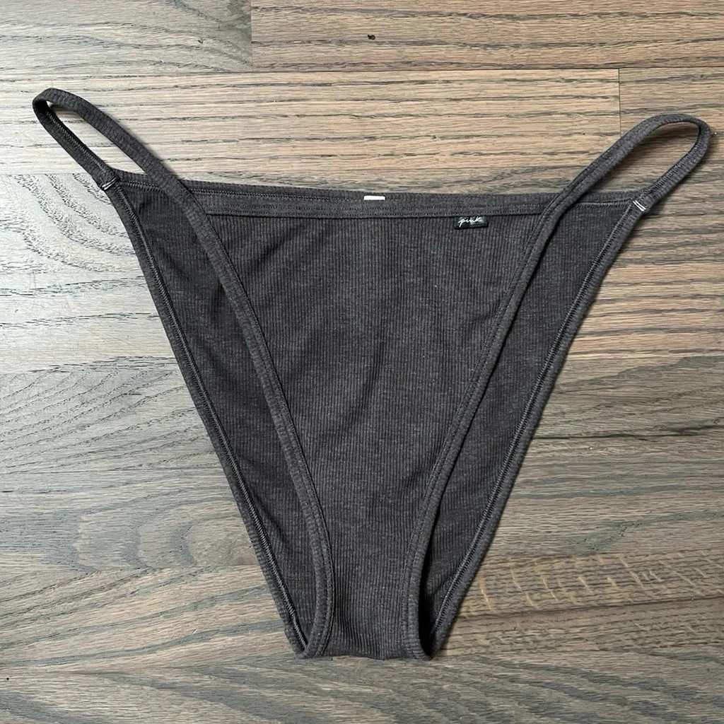 Victorias Secret PINK Soft Cotton Ribbed Bikini Panty XLarge Gray Lot Of 3 New