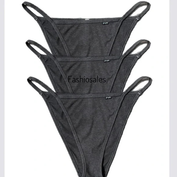 как выглядит Victorias Secret PINK Soft Cotton Ribbed Bikini Panty XLarge Gray Lot Of 3 New фото