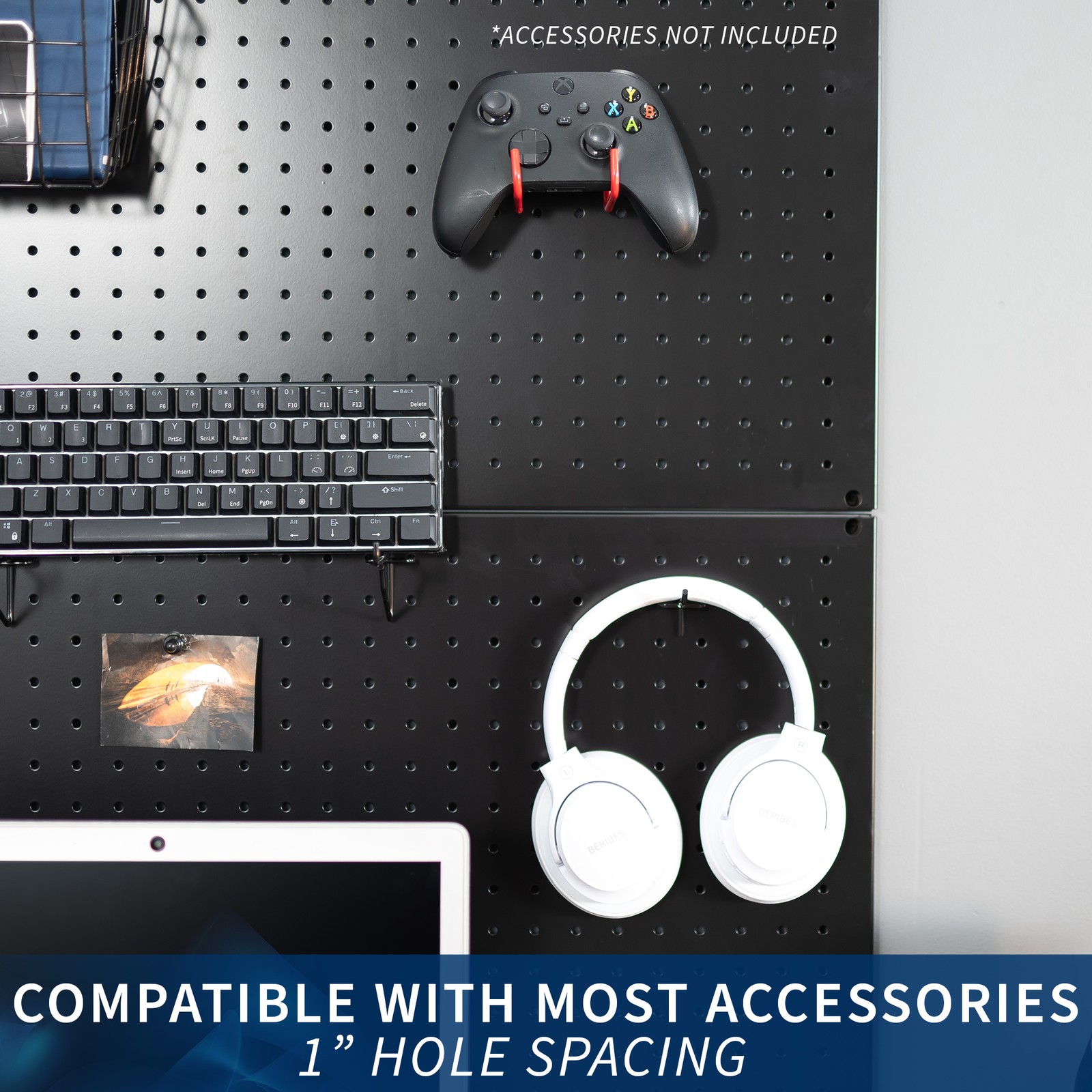 VIVO Black Steel Wall Mounted 48 x 32 Pegboard 3 Panel System