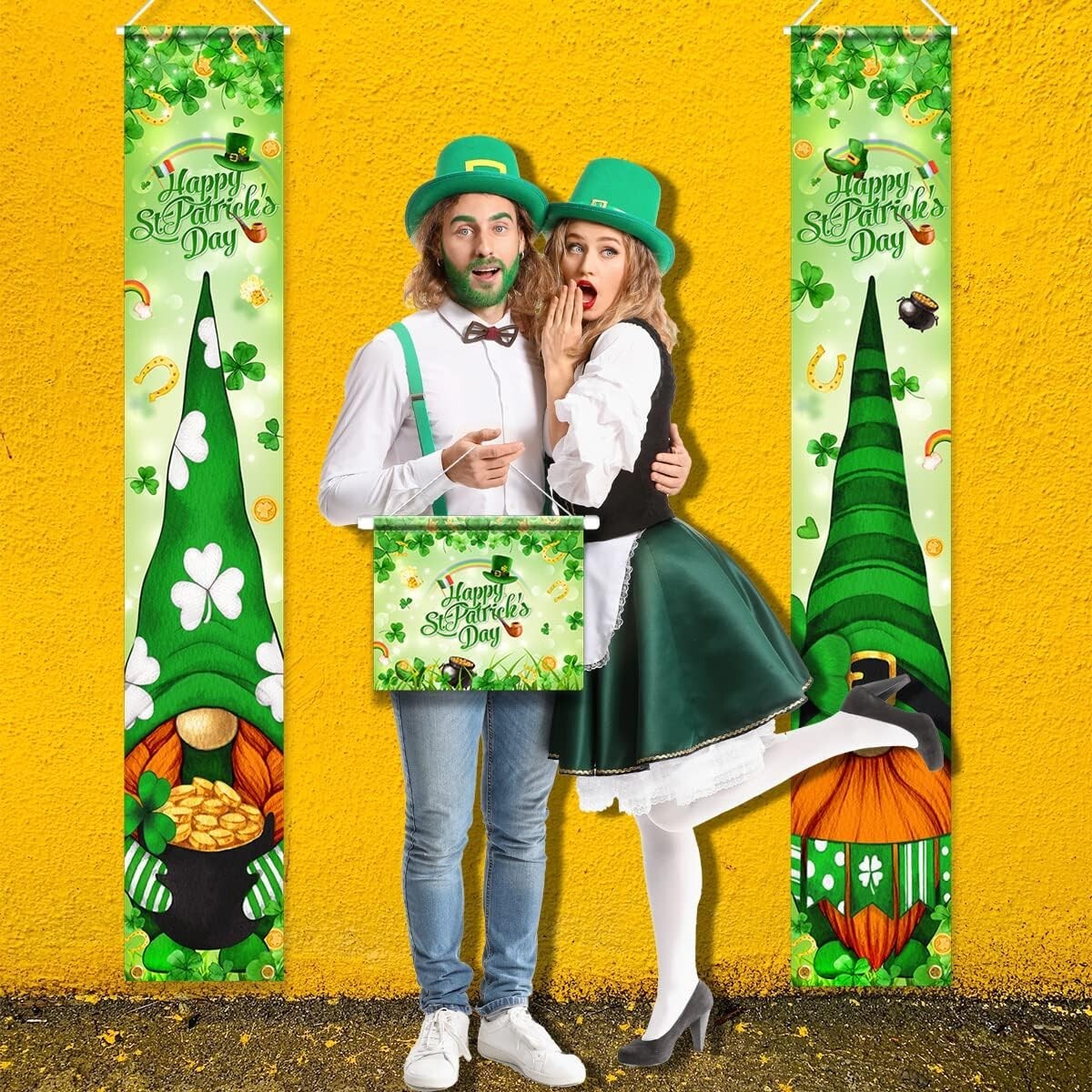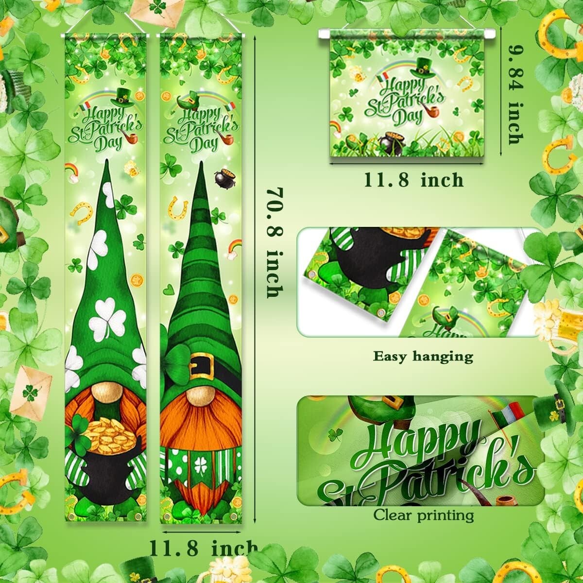 3pcs Gnome St. Patrick's Day Porch Hanging Banner Wall Party Welcome Decorations