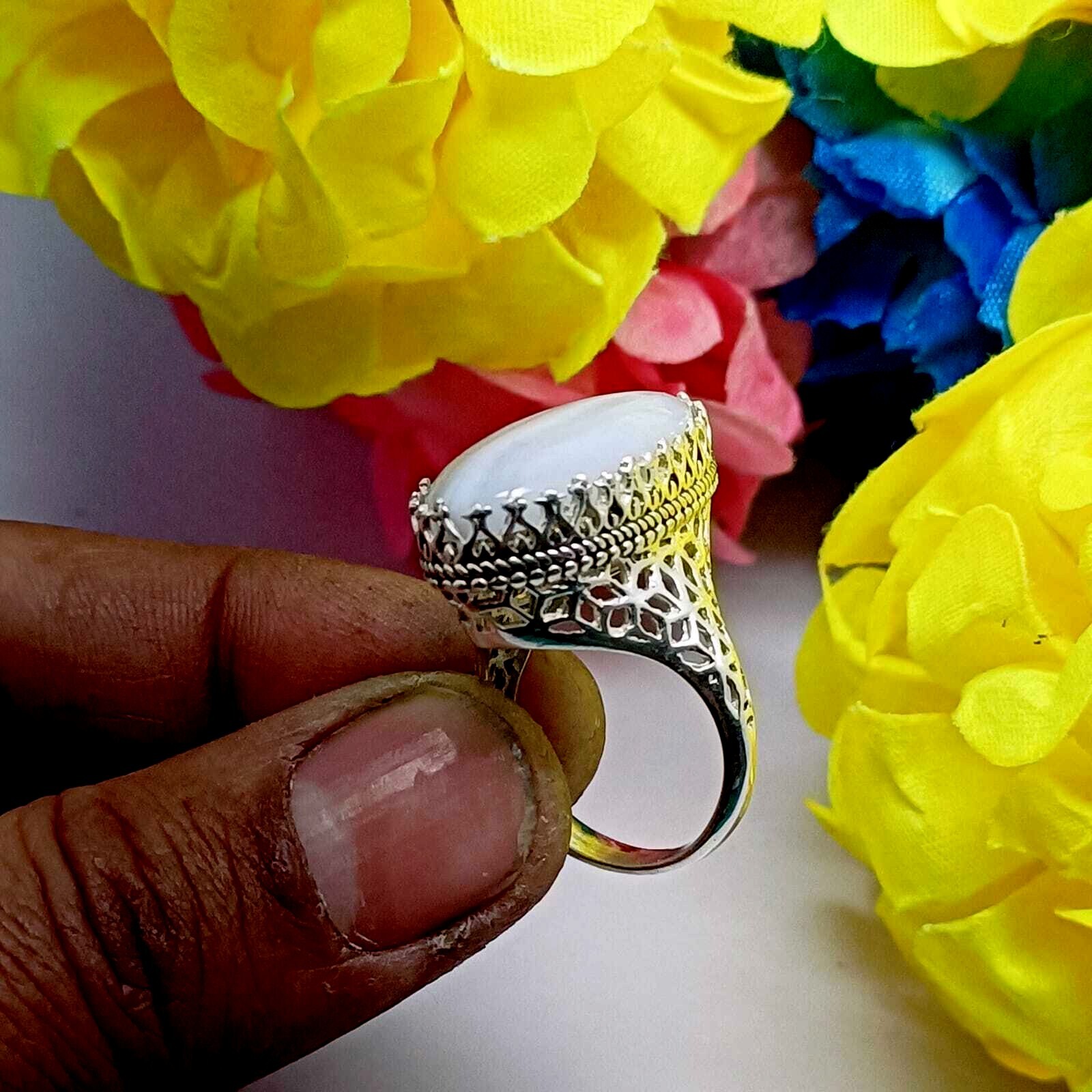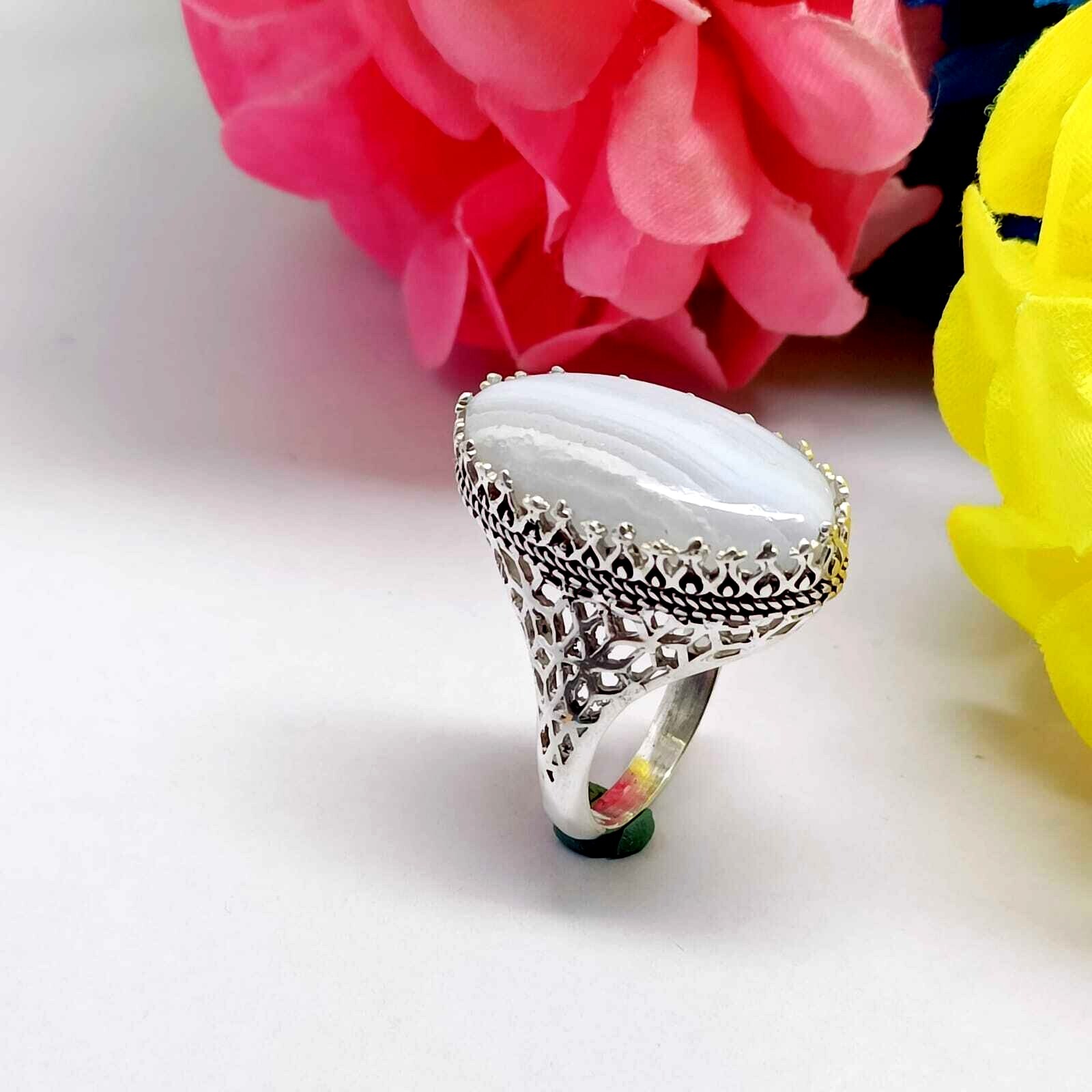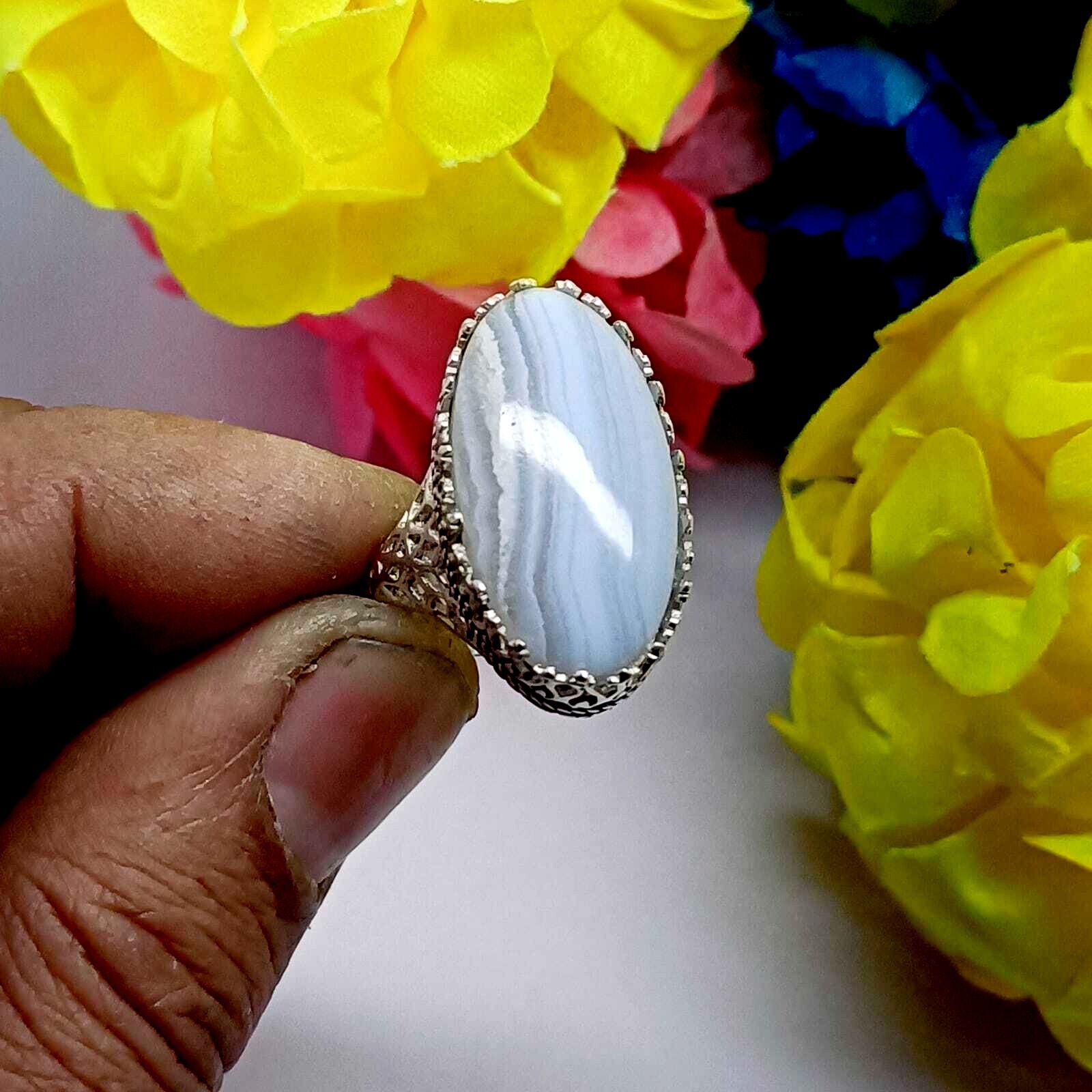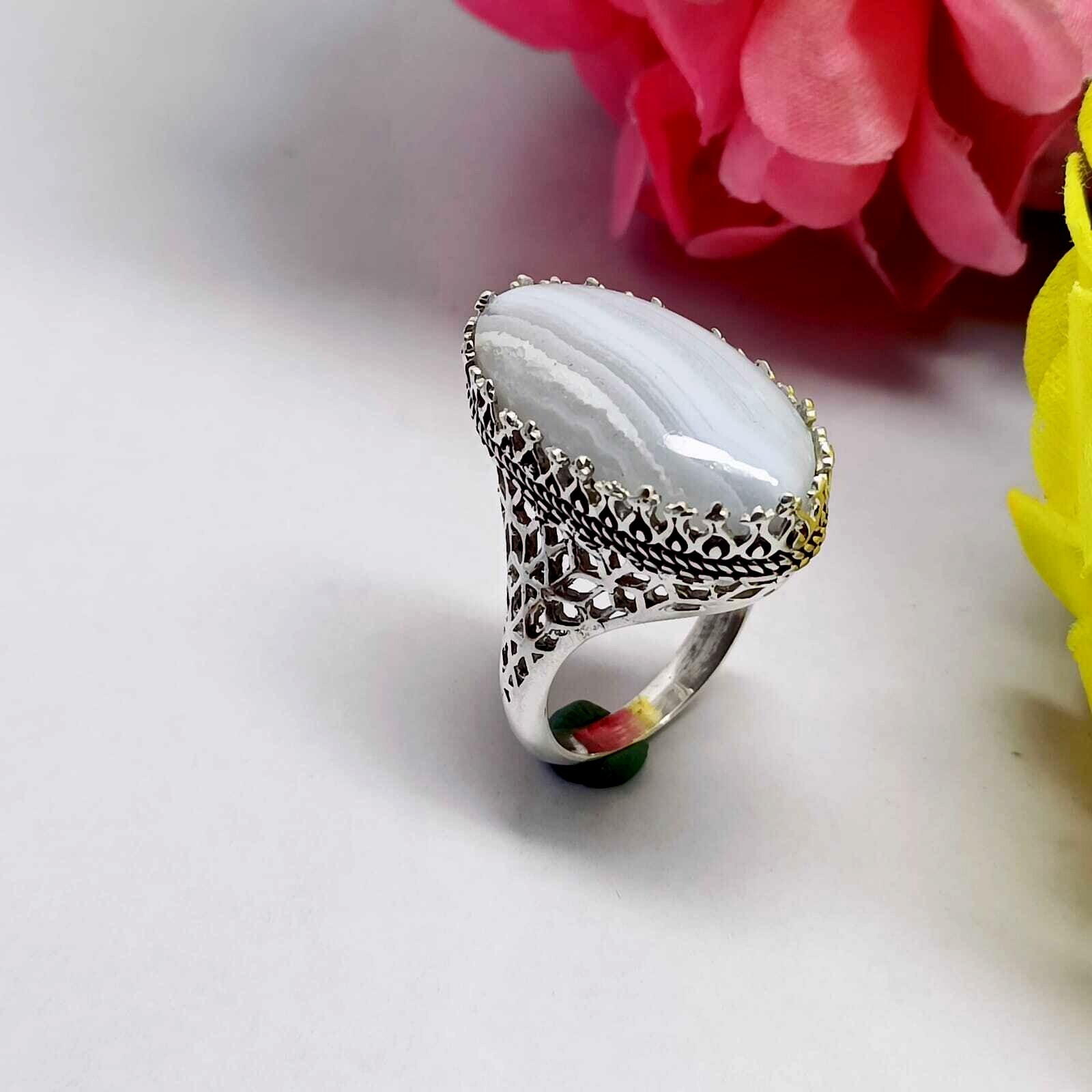 как выглядит Blue Lace Agate Gemstone Ring, 925 Sterling Silver Handmade Ring, All Size фото