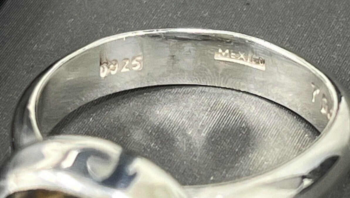 925 TD-69 Vintage MEXICO Sterling Silver Leopard Skin Jasper Stone Ring Size 7