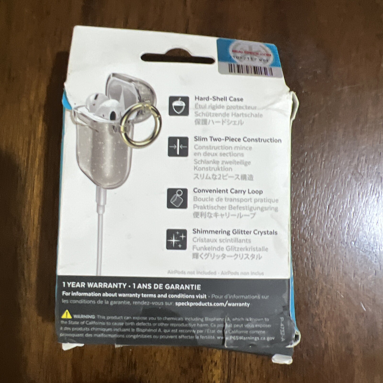 как выглядит Speck Presidio Clear Glitter Case for AirPods Gen 1/2 - Clear/Gold Glitter фото