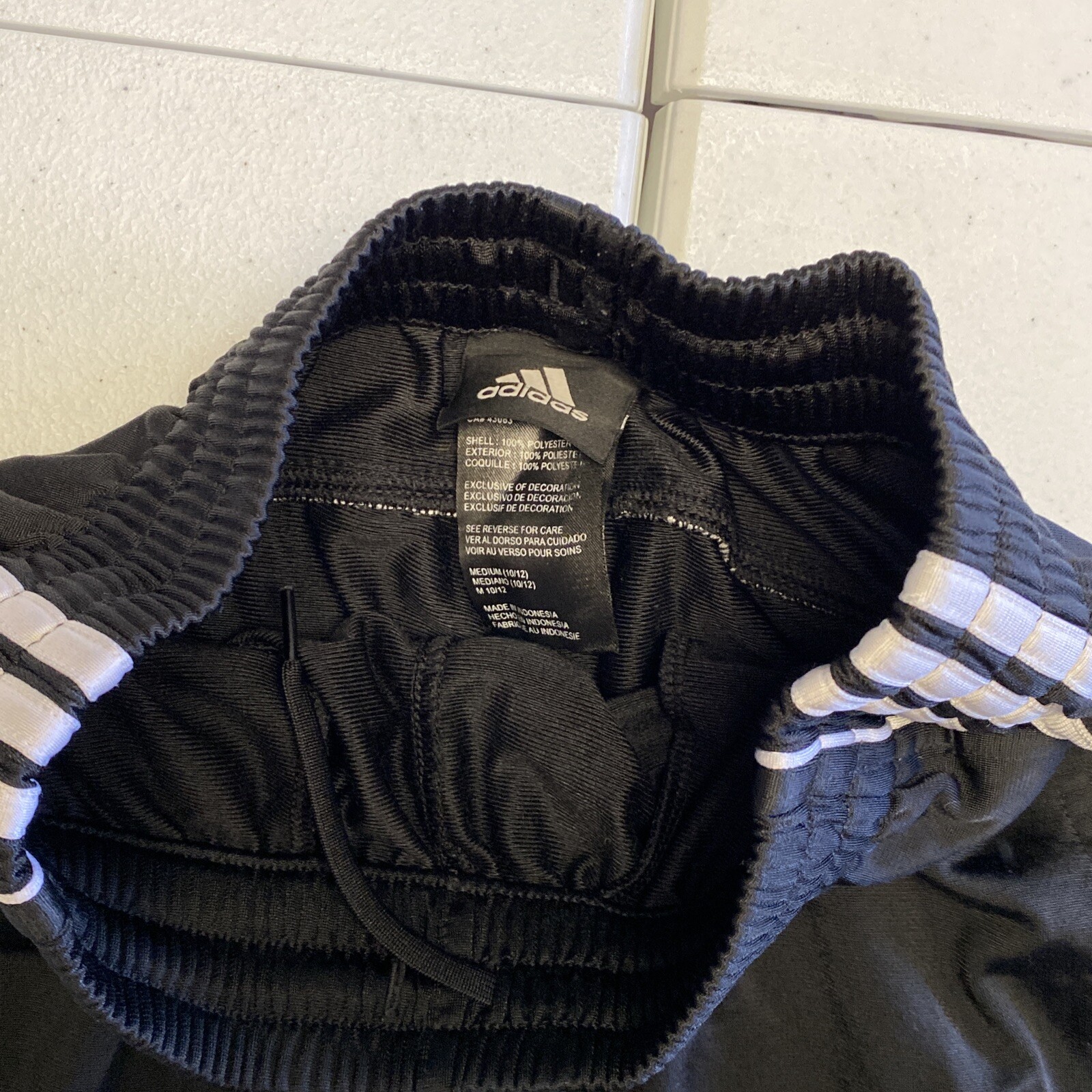 Adidas Youth Kids M 10-12 Black White Stripe Heavy Pocket Track Pants