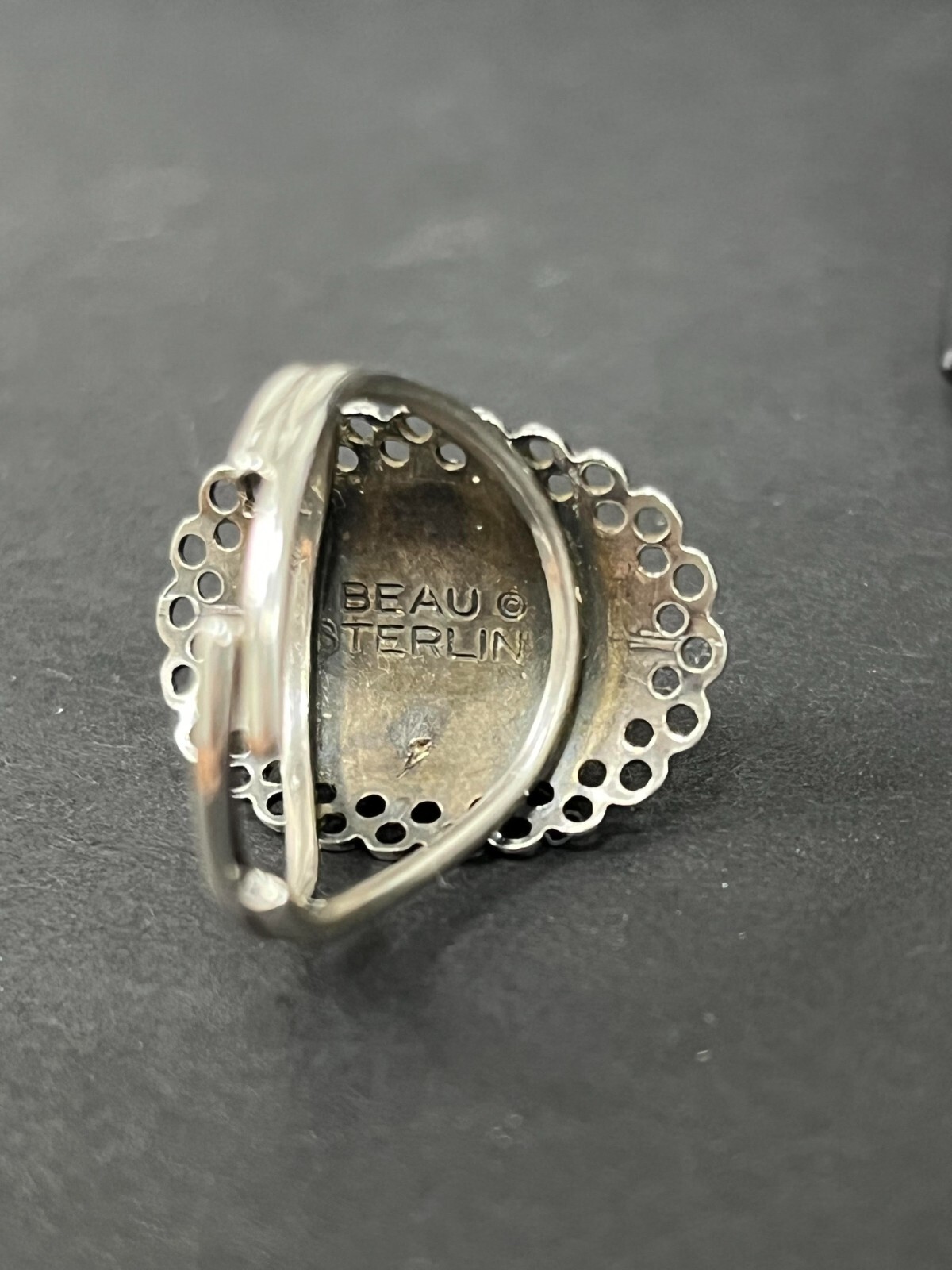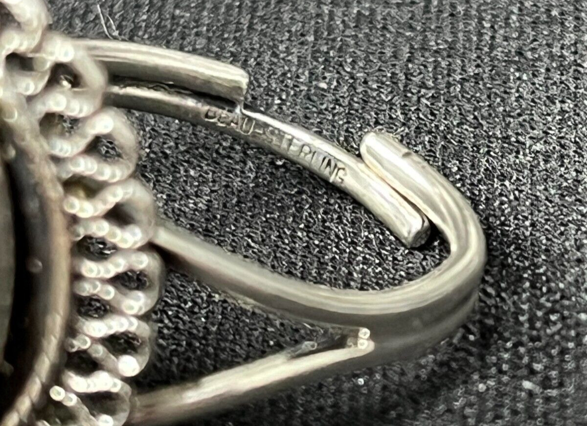 Size adjustable, Beau Sterling 925 silver handmade filigree ring with turquoise