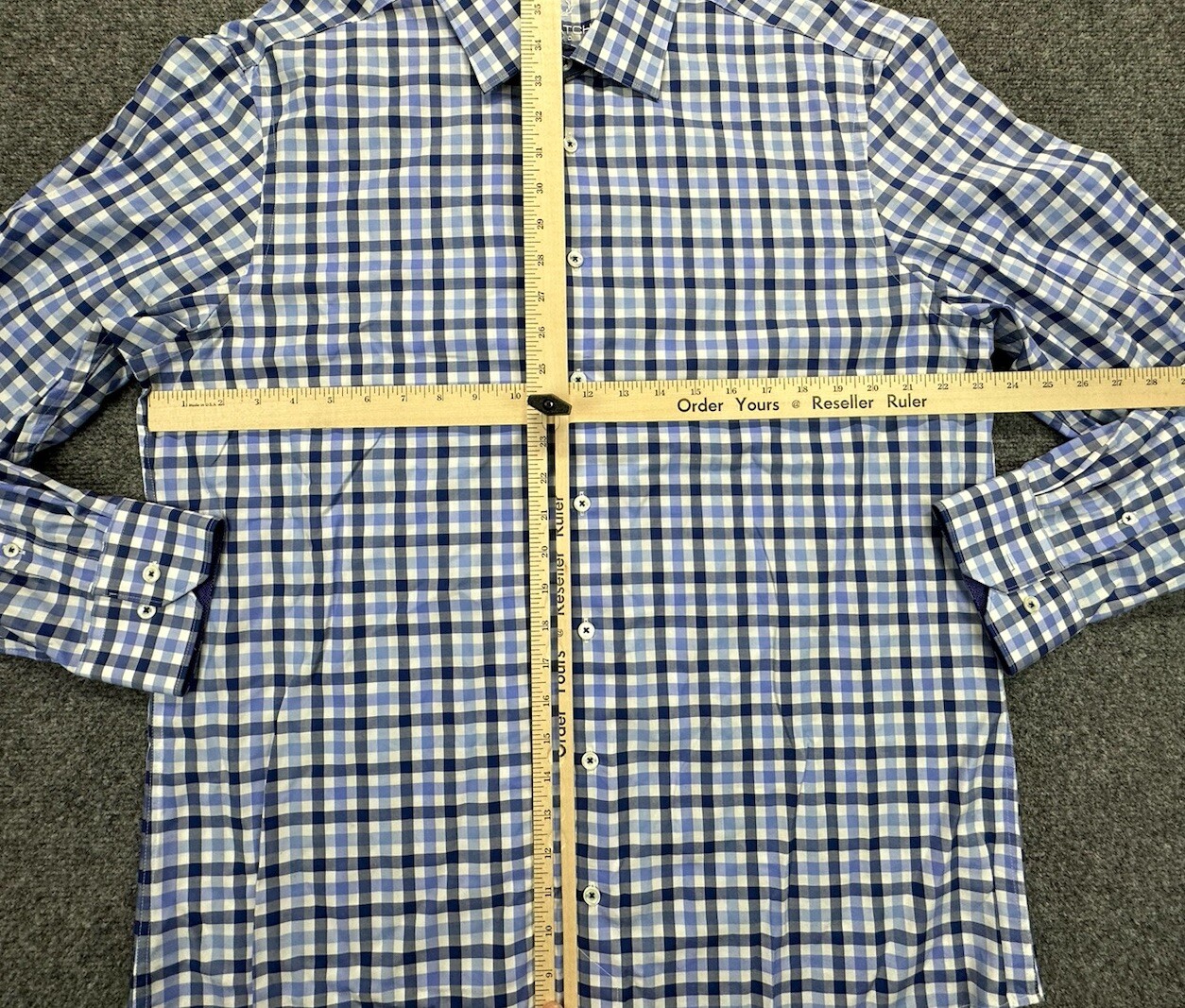 как выглядит Bugatchi Uomo Mens 18/36-37 Button Front Long Sleeve Dress Shirt Blue Checkered фото