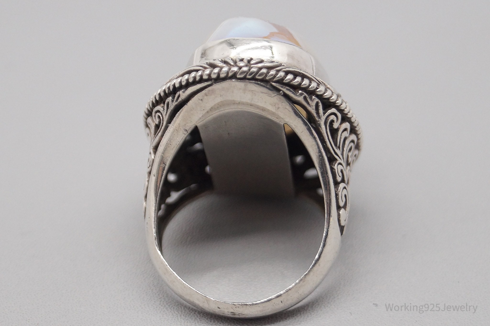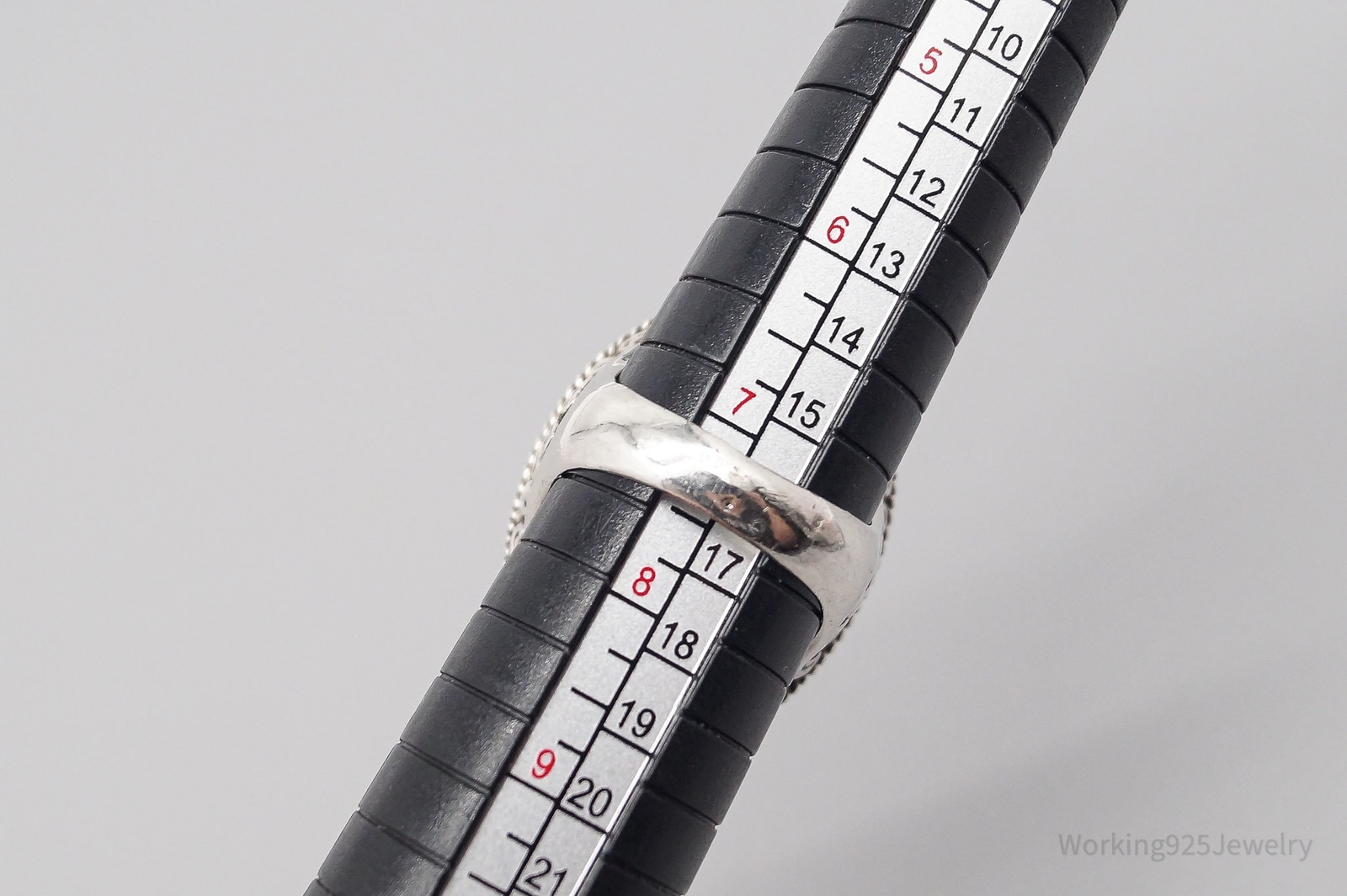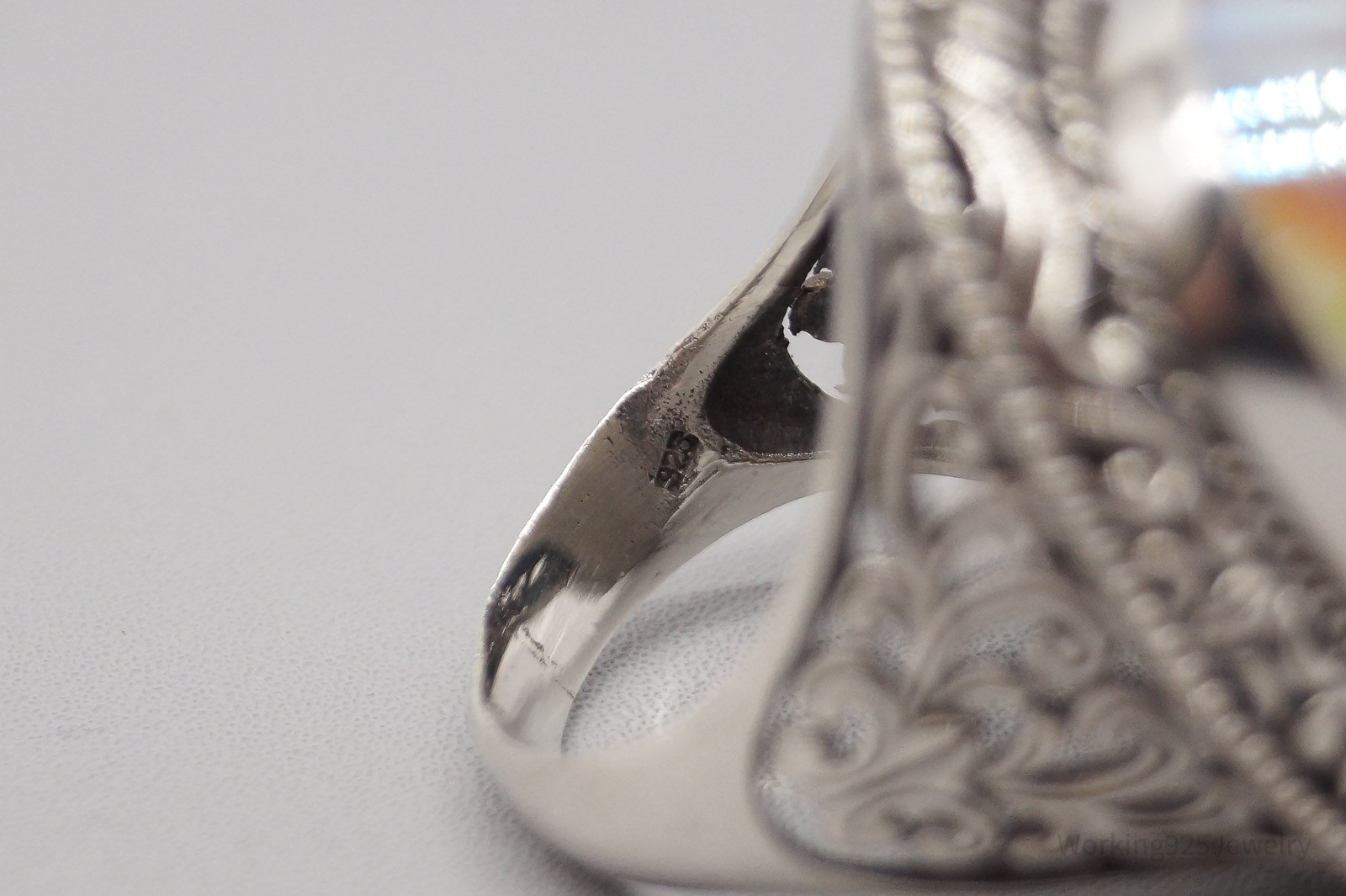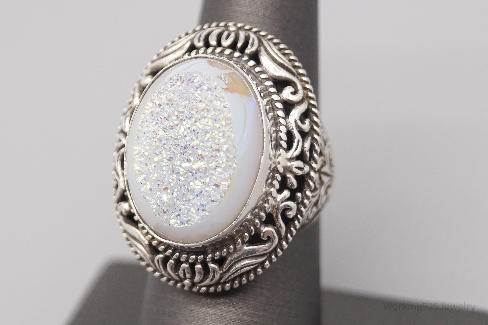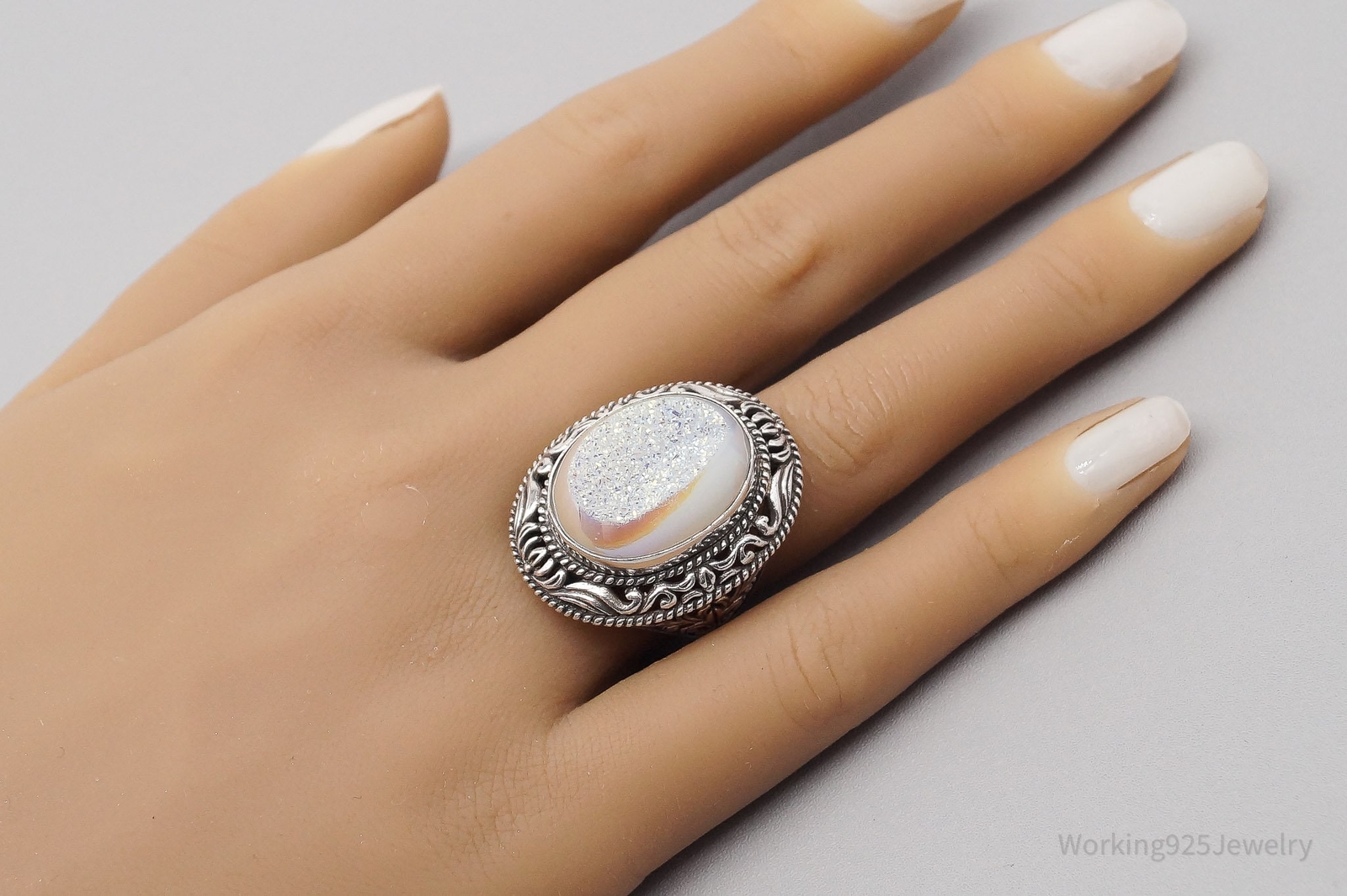 Vintage Large White Druzy Quartz Sterling Silver Ring - Size 7.25
