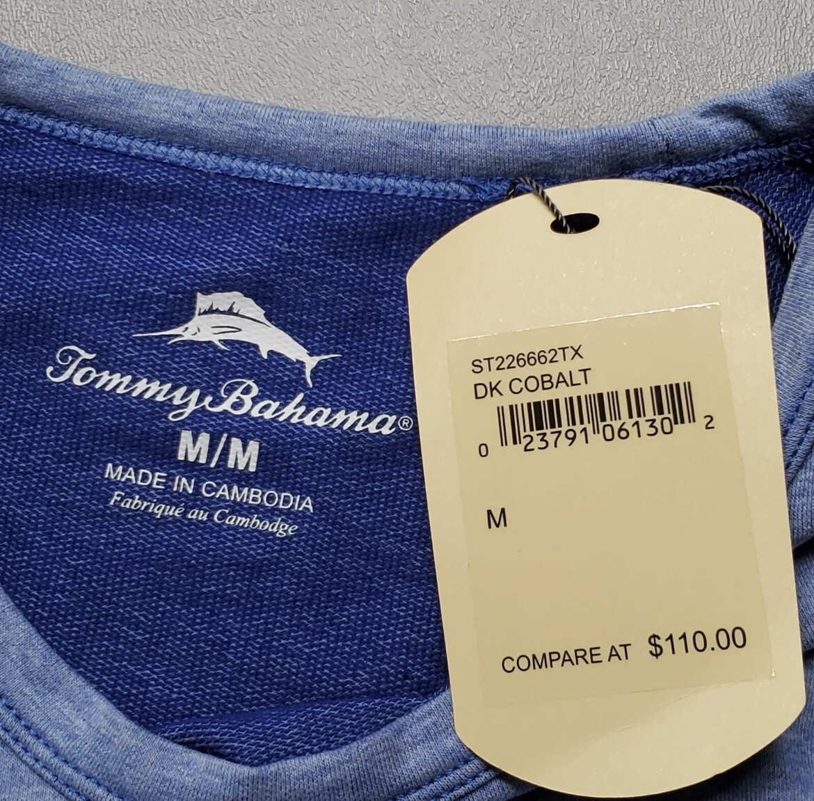NWOT TOMMY BAHAMA CREW SWEATER -M- BLUE -MARLIN COTTON POLY STRETCH -SOFT GOLF