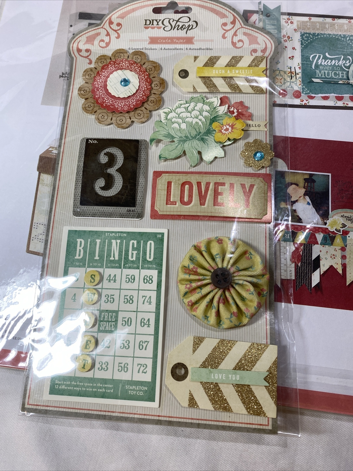 как выглядит Bingo Scrapbook Lot - Paper, Stickers, Clothespins EtcAmerican Crafts, DIY Shop фото