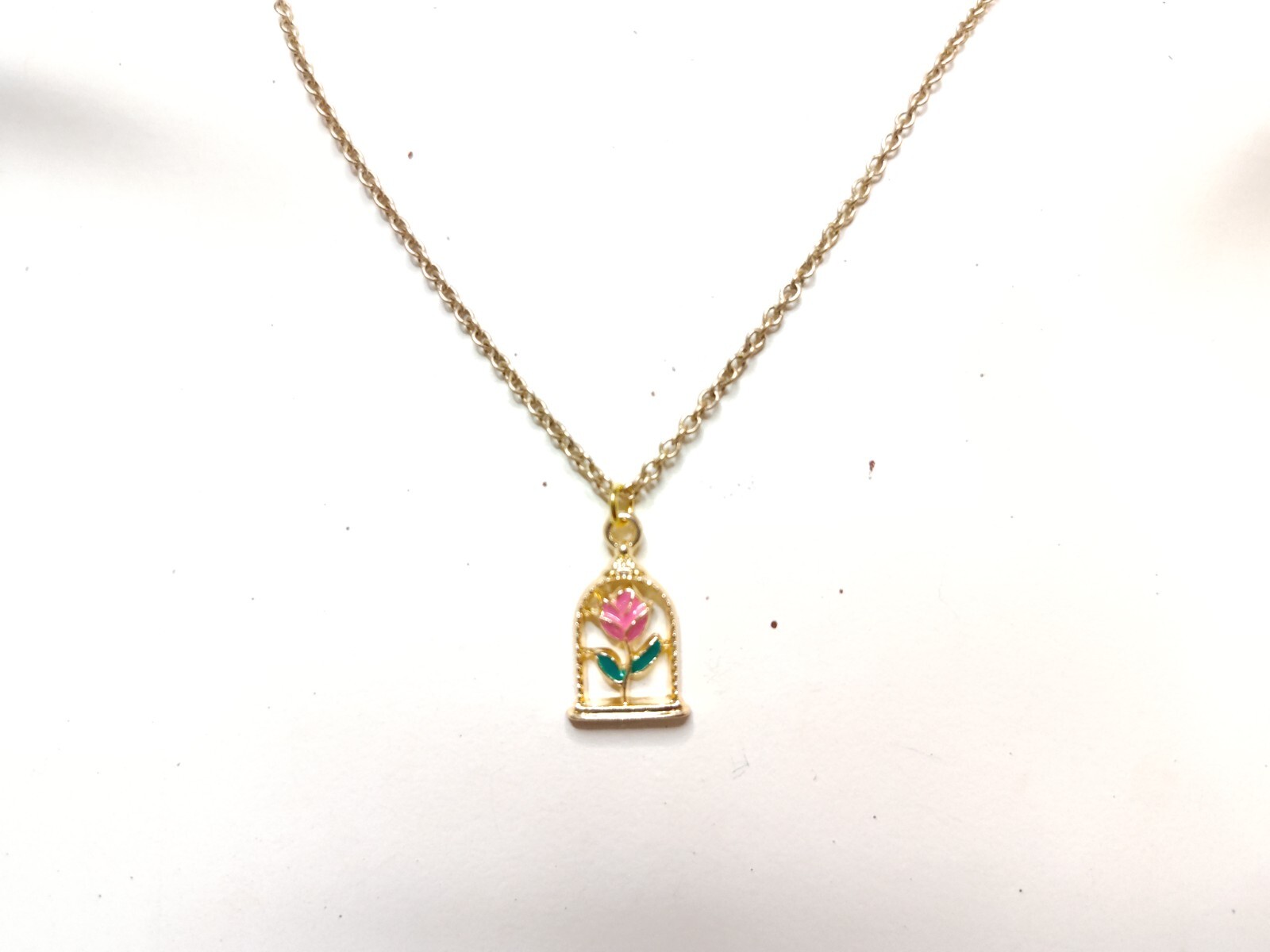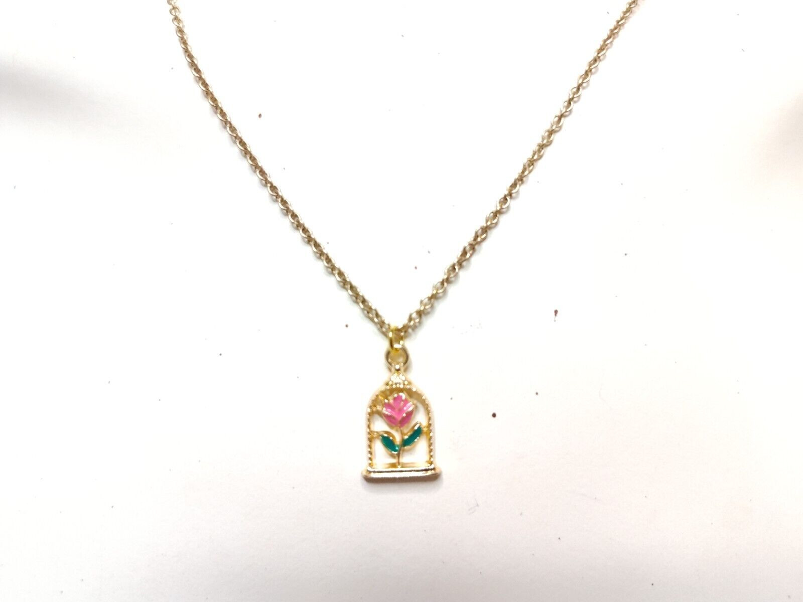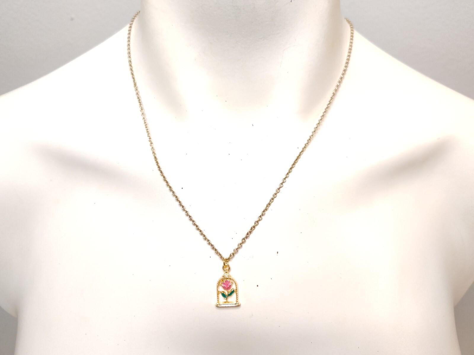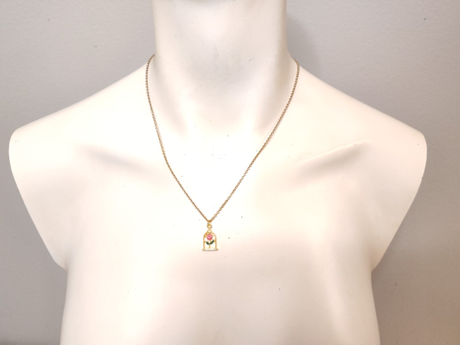 как выглядит NEW ROSE PENDANT NECKLACE PINK FLOWER GOLD TONE CHAIN фото