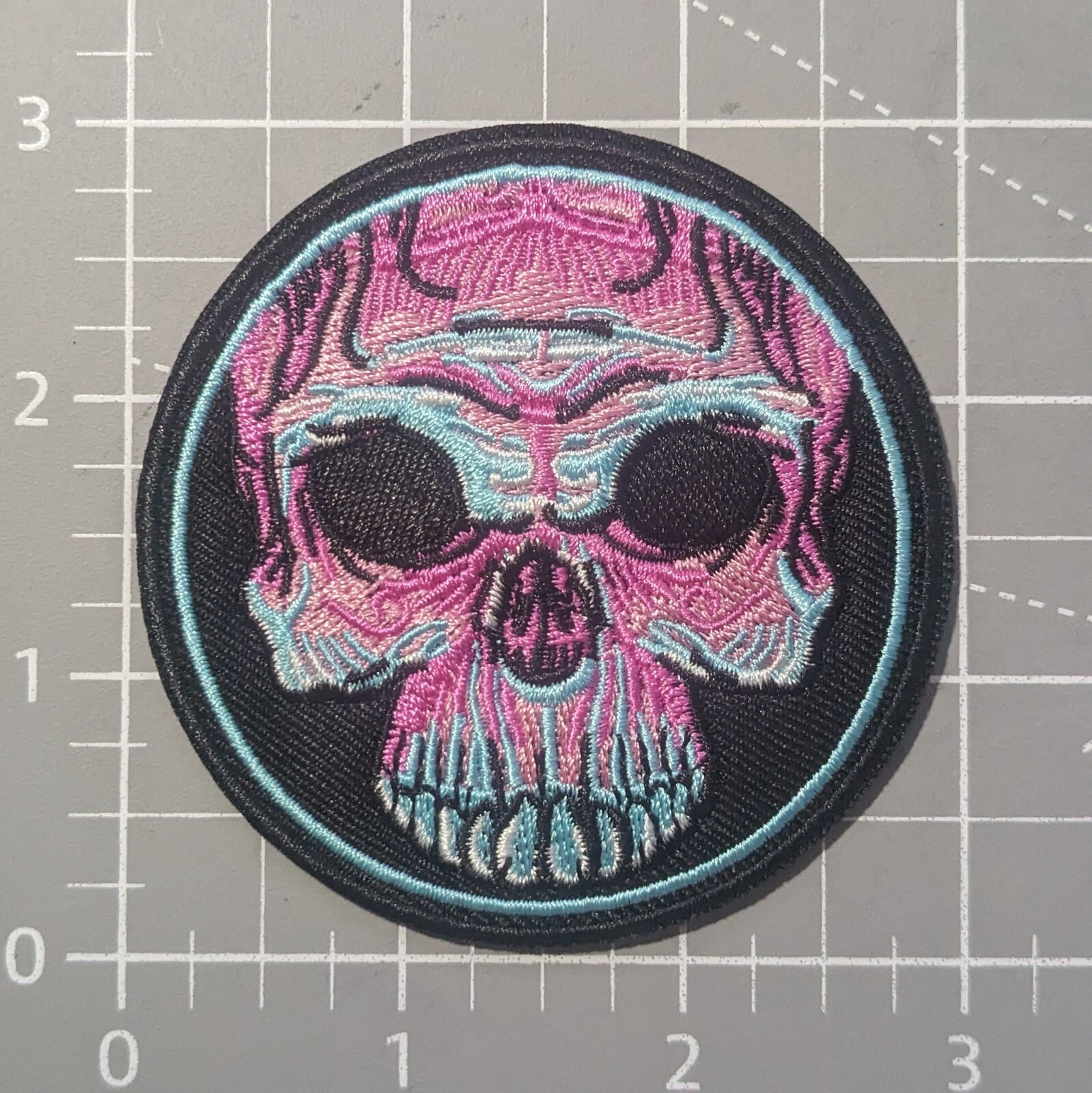 Purple Skull Patch Bones Goth Death Punk Biker Embroidered Iron On Patch 3