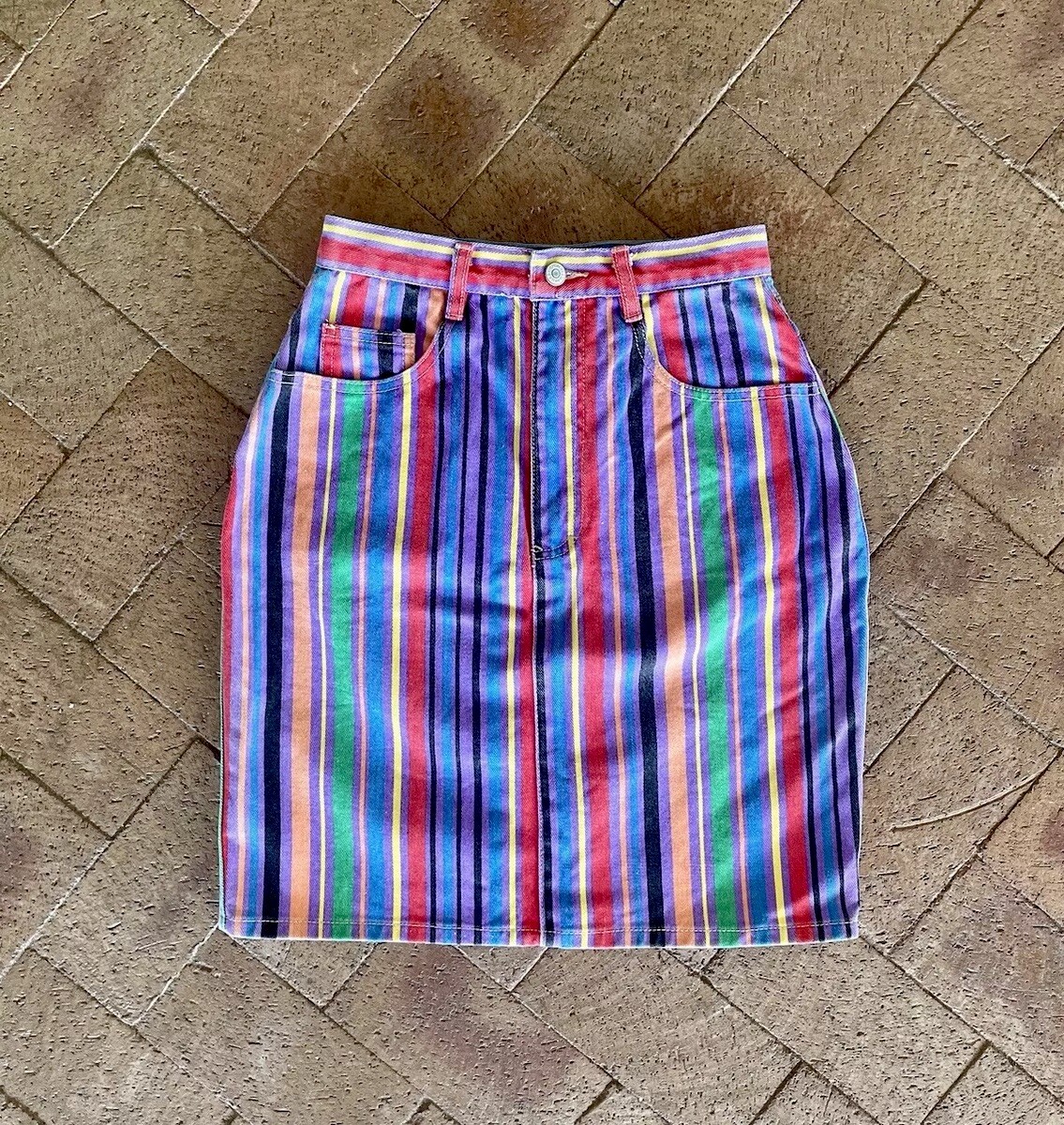 как выглядит Vintage Y2K Striped Jeanjer By Jordache Jean Denim 100 Cotton Mini Skirt 26 27 фото