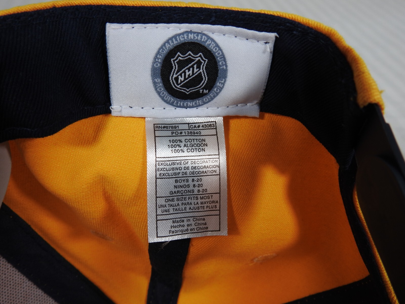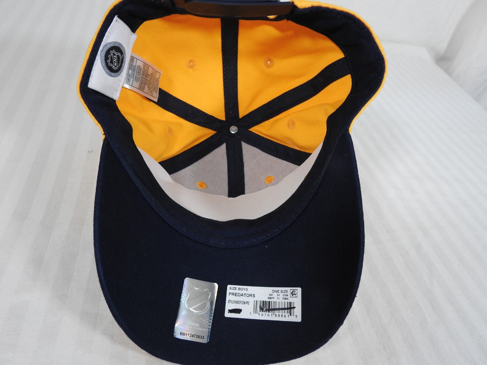 как выглядит NEW W/O TAGS. NHL Nashville Predators YOUTH Snapback Adjustable Cap. Yellow. фото