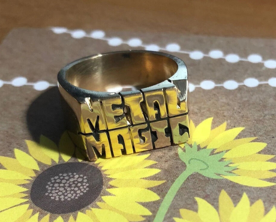 как выглядит Thick Brass Ring Two Names Stacked Hand Carved Custom Personalized Made To Order фото